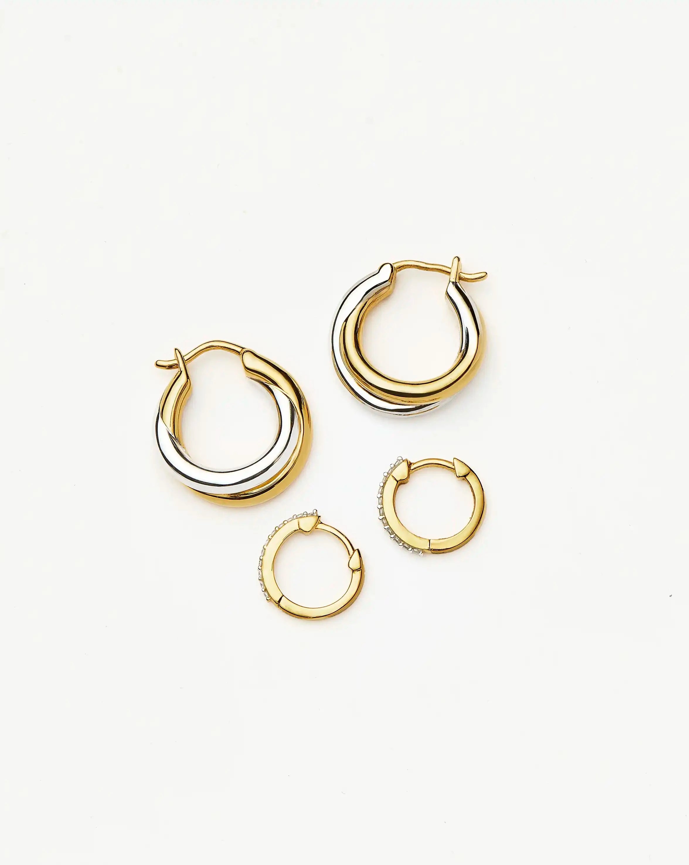 Elevate your everyday ear stack with this must-have classic hoop earring and huggies set. Teamed together, the iconic Lucy Williams Entwine Small Hoop Earrings and our Classic Pave Huggies. Save more when buying them together.