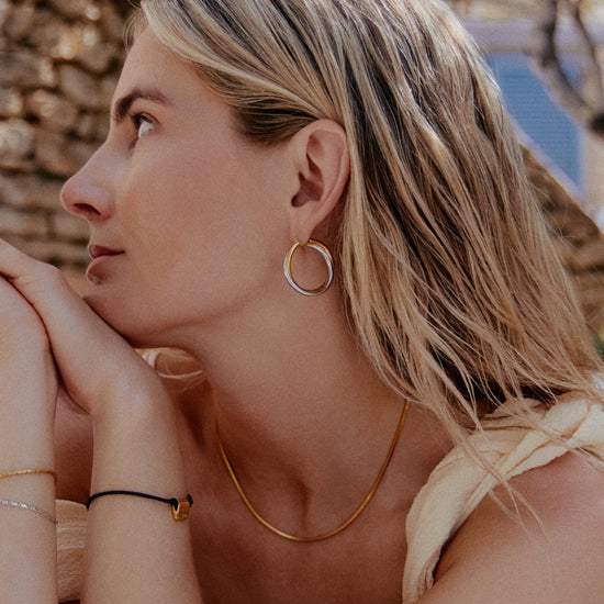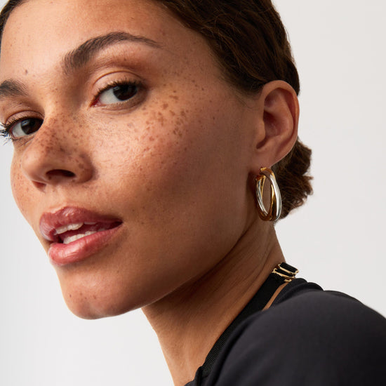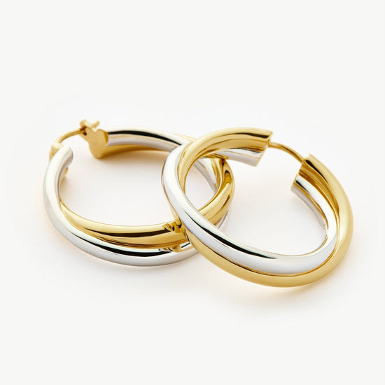 A classic, reimagined. Inspired by our best selling Lucy Williams Chunky Entwine Hoops, these mixed metal hoops feature a vintage-inspired crossover design. Wear solo or pair with stud earrings for an instant ear stack.