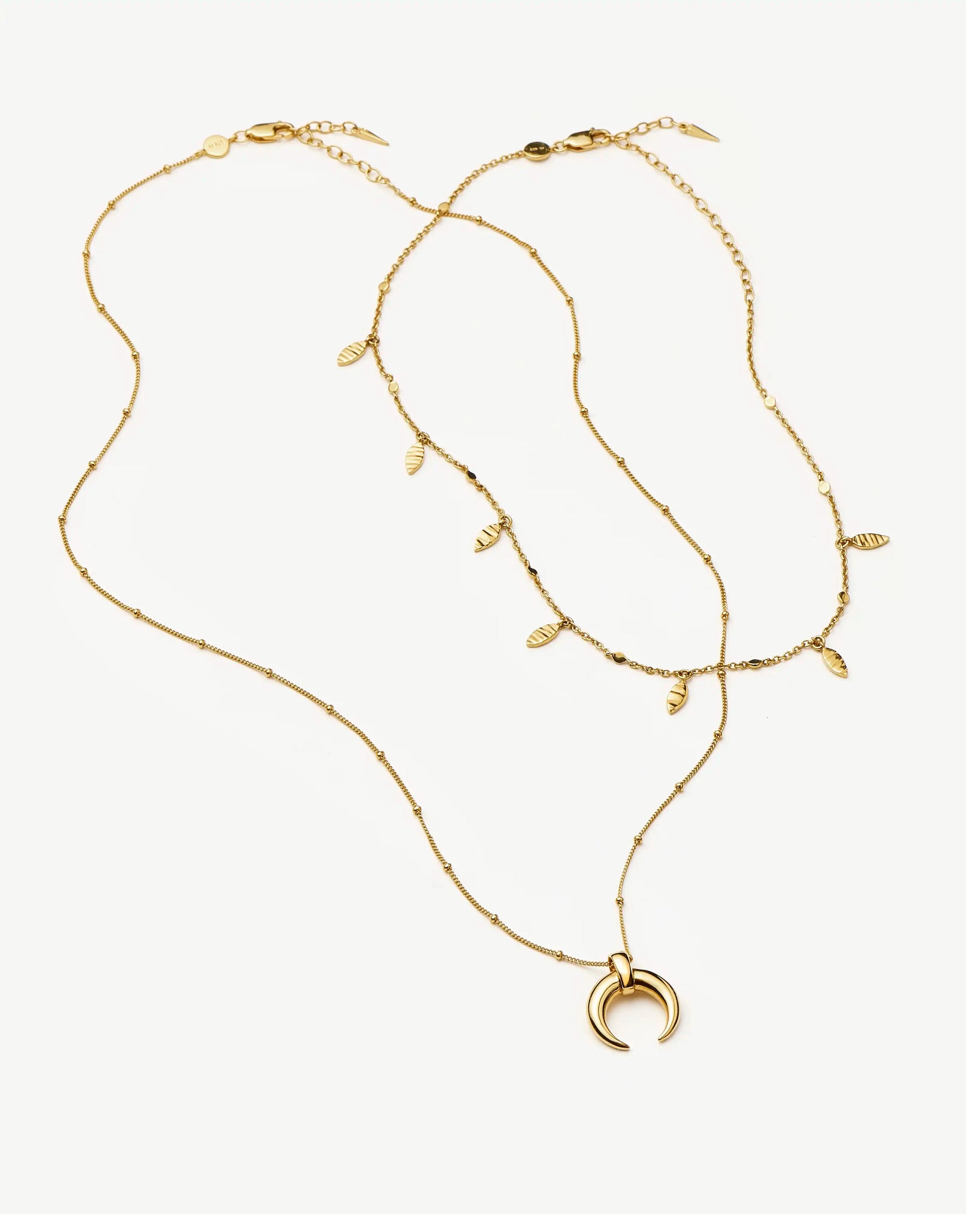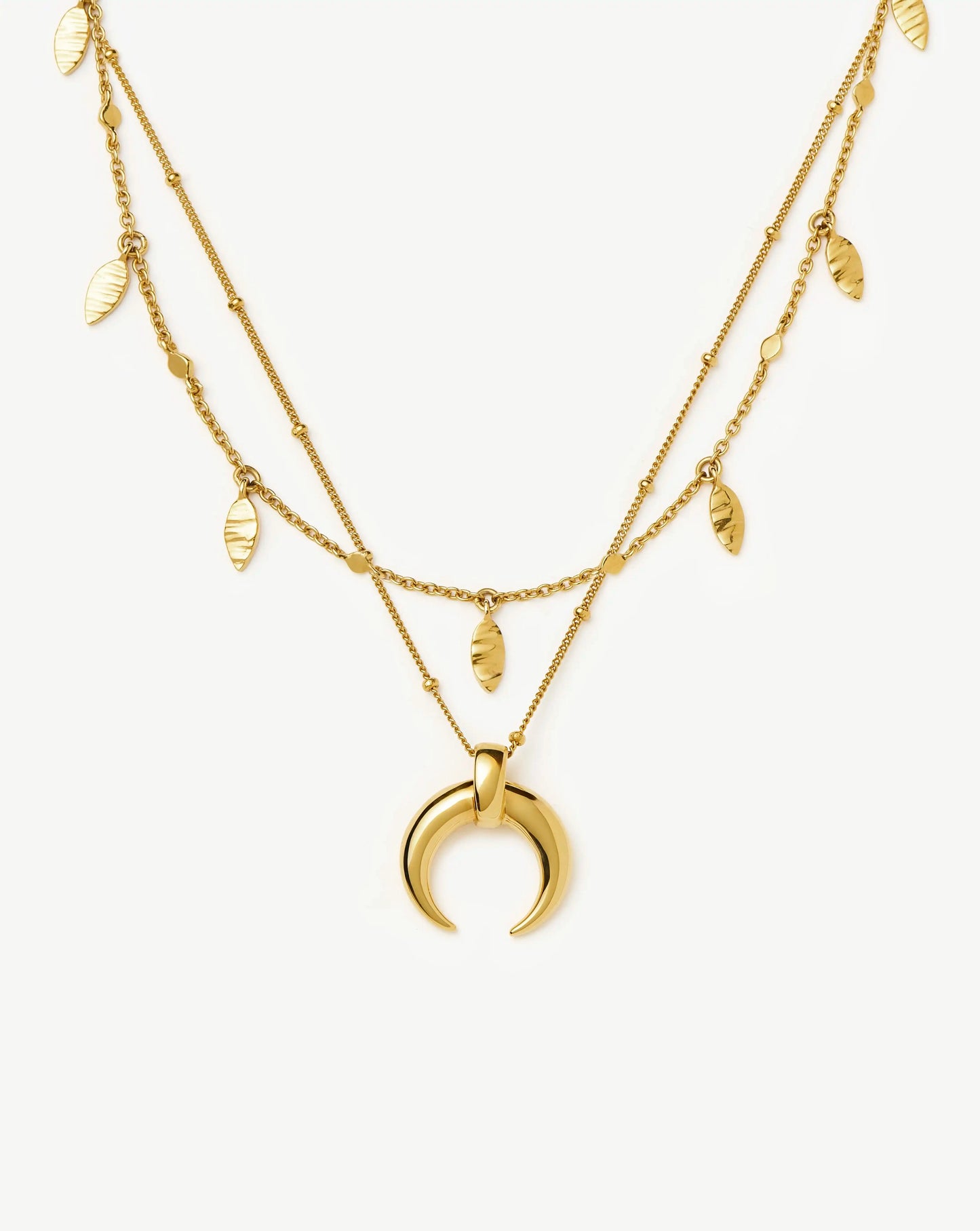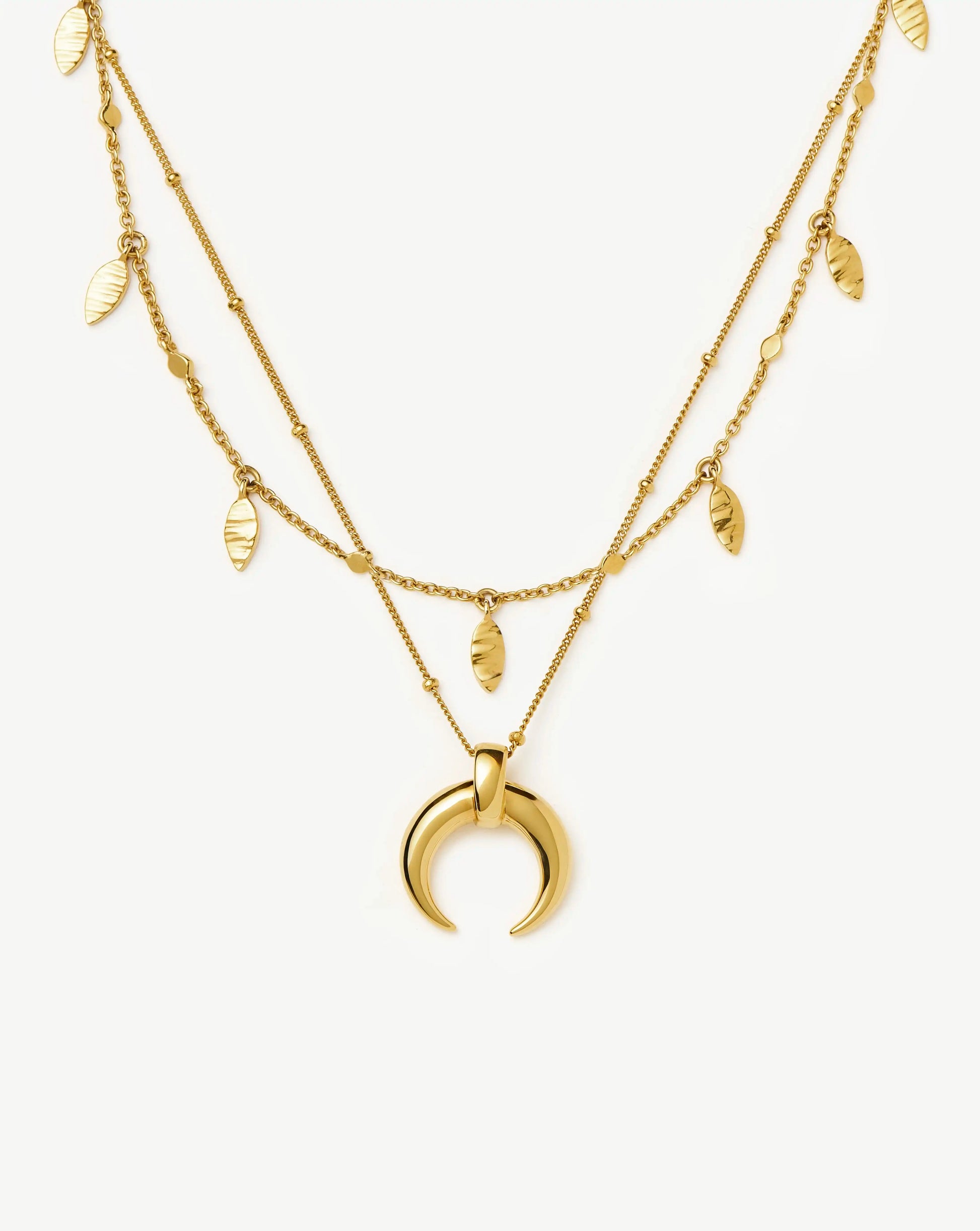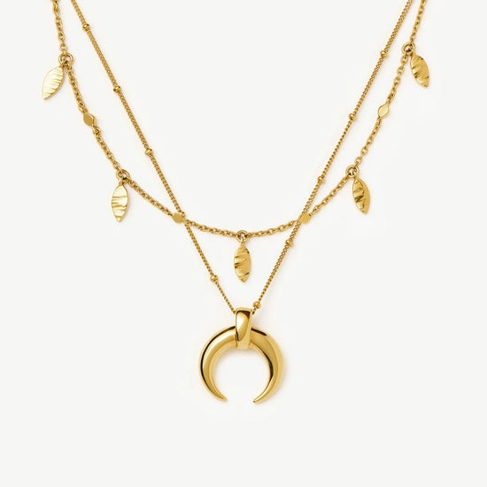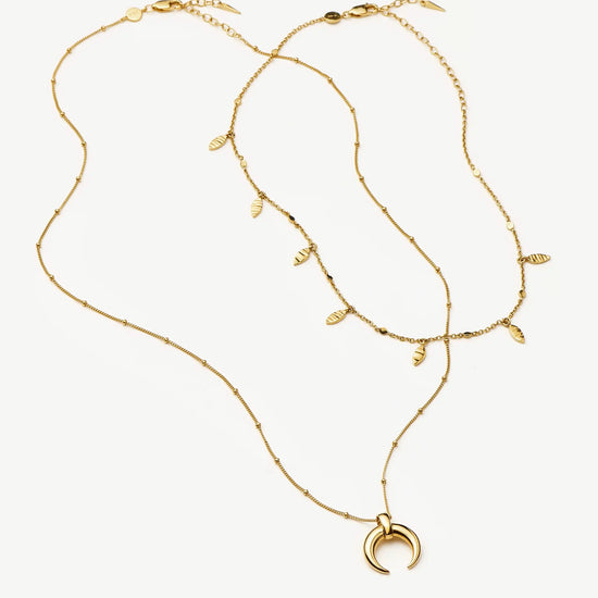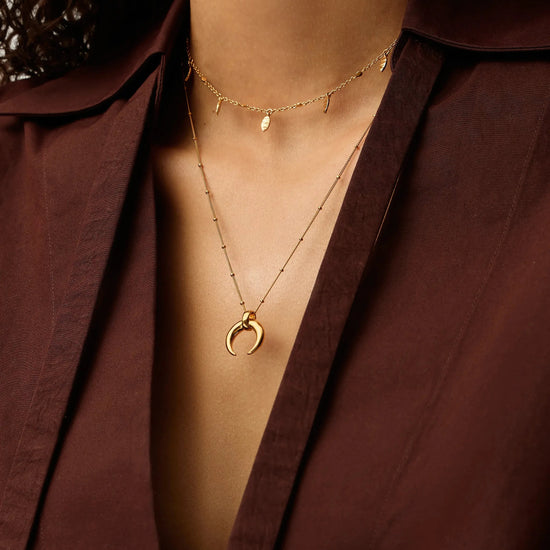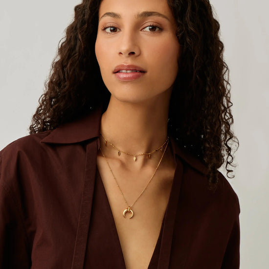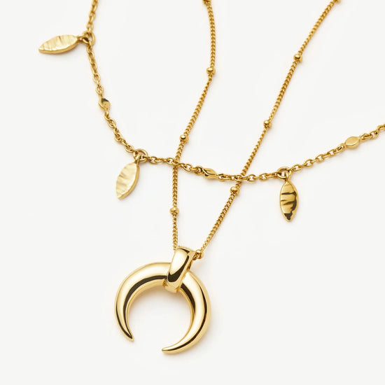 Discover the Large Horn Pendant Necklace, an original Lucy Williams design now paired with our essential Leaf Charm Choker. Wear separately for a classic look or accessorise by layering together. Save more when buying them together.