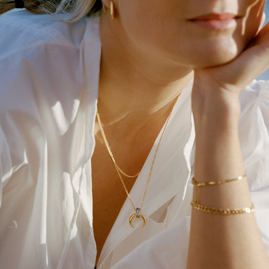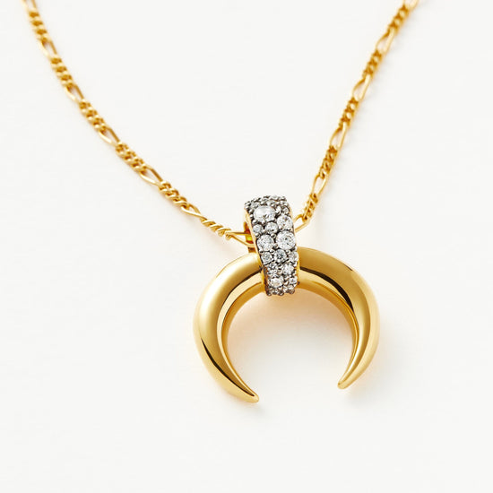 A classic, reimagined. Inspired by our original Lucy Williams x Missoma trendsetting design, the large horn pendant features cubic zirconia snow pavé for a fine-style Jewelry finish, paired with a mini figaro chain. Style with a classic choker for a layered look.
