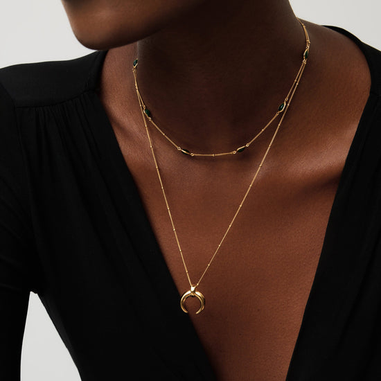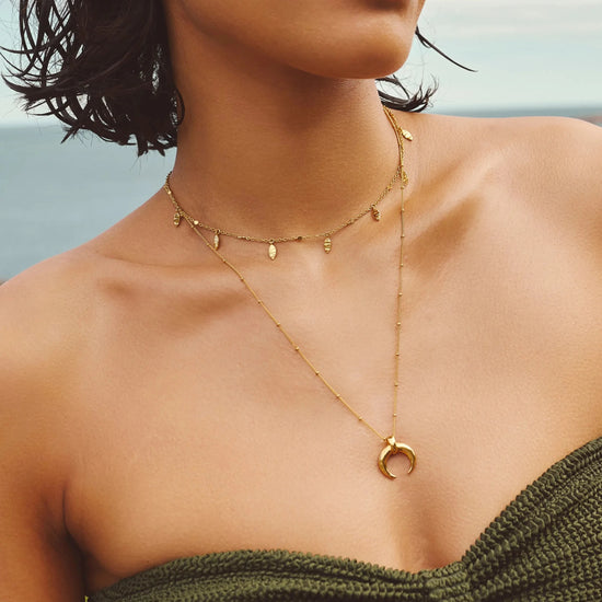 Our original Lucy Williams x Missoma trendsetting design. Paired with a delicate bobble chain, the unique horn pendant gives a distinctive finish to this best seller. Pair with a classic choker for a layered look.