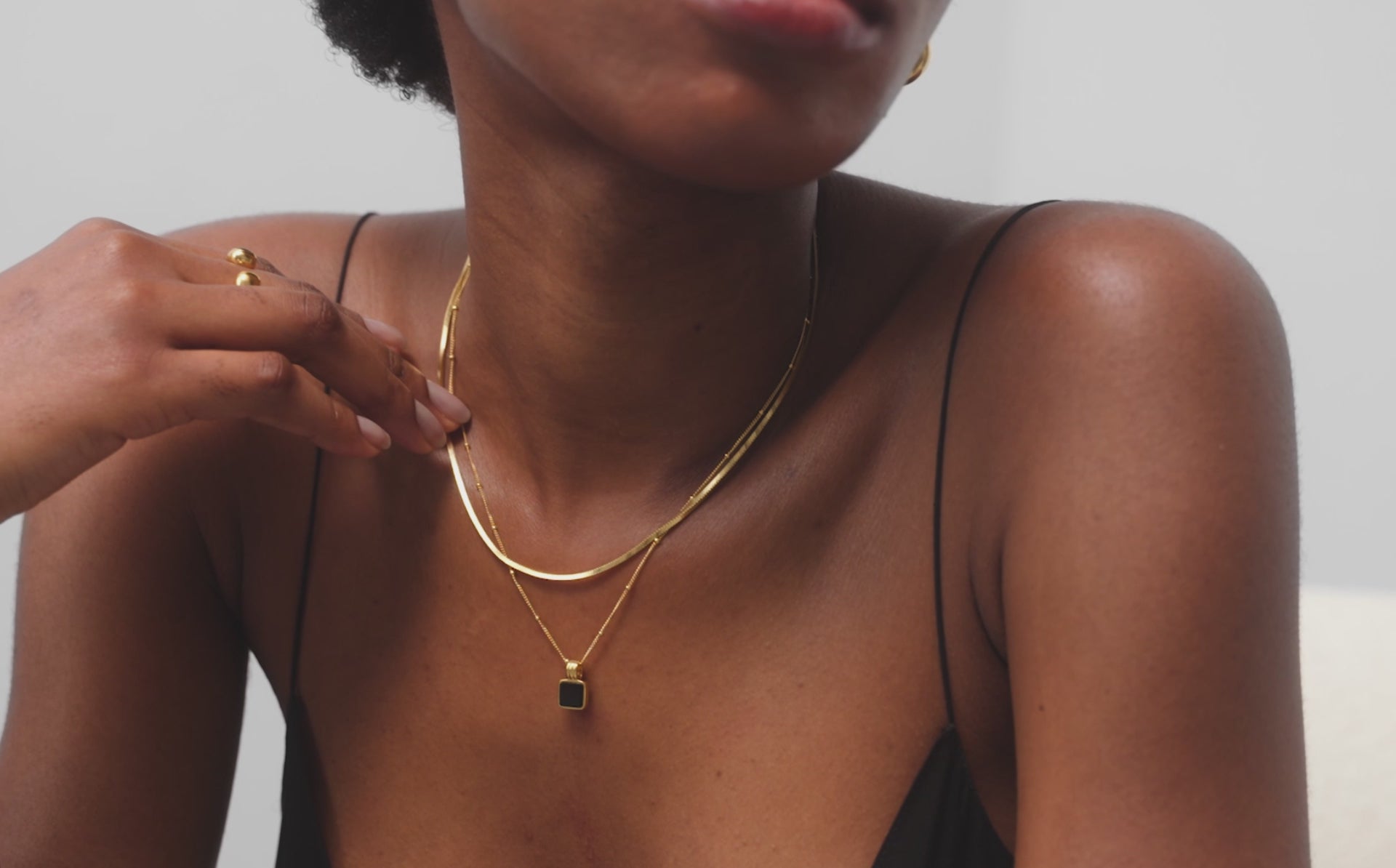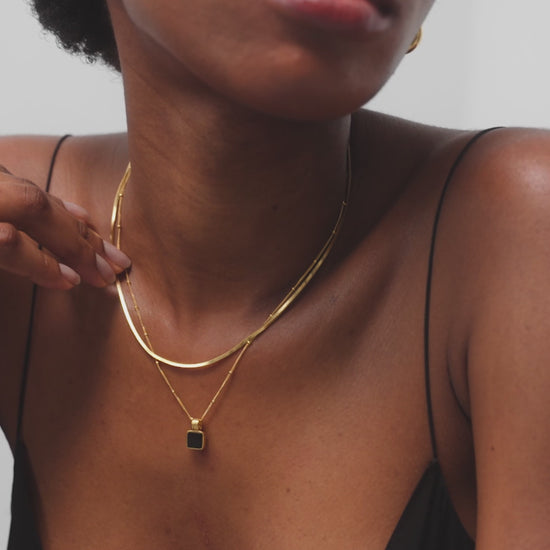 A semi-precious addition to your layers. Paired with a delicate chain, the square Onyx pendant, known as the protection stone, creates a distinctive focal point. Layer this best selling piece with a longer necklace or coin choker for a Lucy Williams duo you'll never take off.
