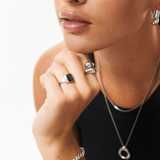 A best selling Lucy Williams x Missoma design, now for silver lovers. A vintage-inspired take on the classic signet ring, this black spinel gemstone is said to have a strong empowering energy and repel negativity. Style this signature piece solo, wear it on your pinky, or stack with more delicate styles.