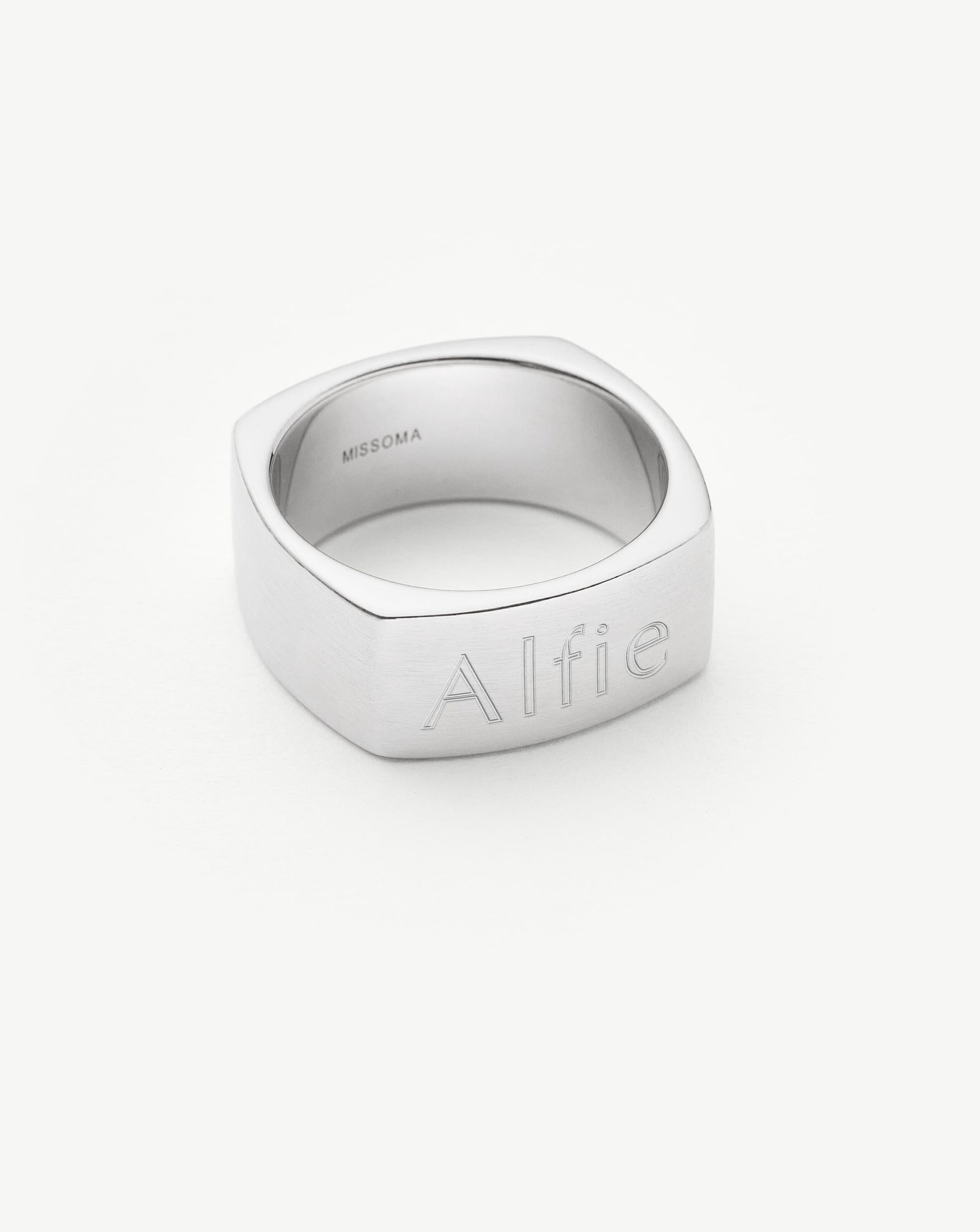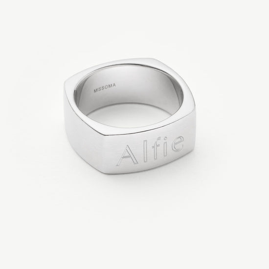 Handcrafted for him. The chunky band ring in classic sterling silver is upgraded with a brushed finish and curved edges, plus it can be engraved on top. Pair with a chunky chain bracelet to create a statement look.