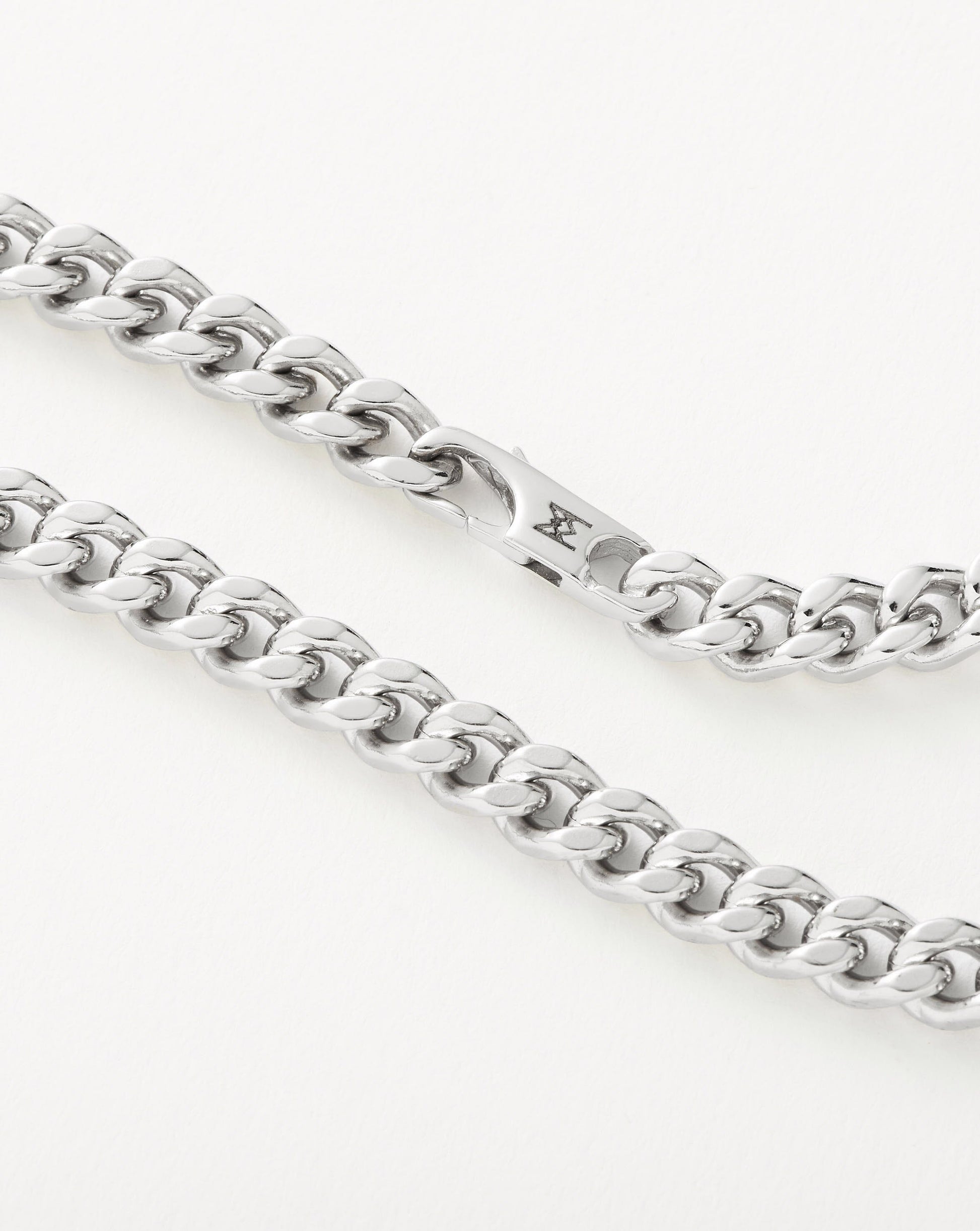Handcrafted for him. This classic curb chain necklace features flat interlocking links, and is finished with a new chunky clasp – designed to match the width of our statement chains for a seamless finish.