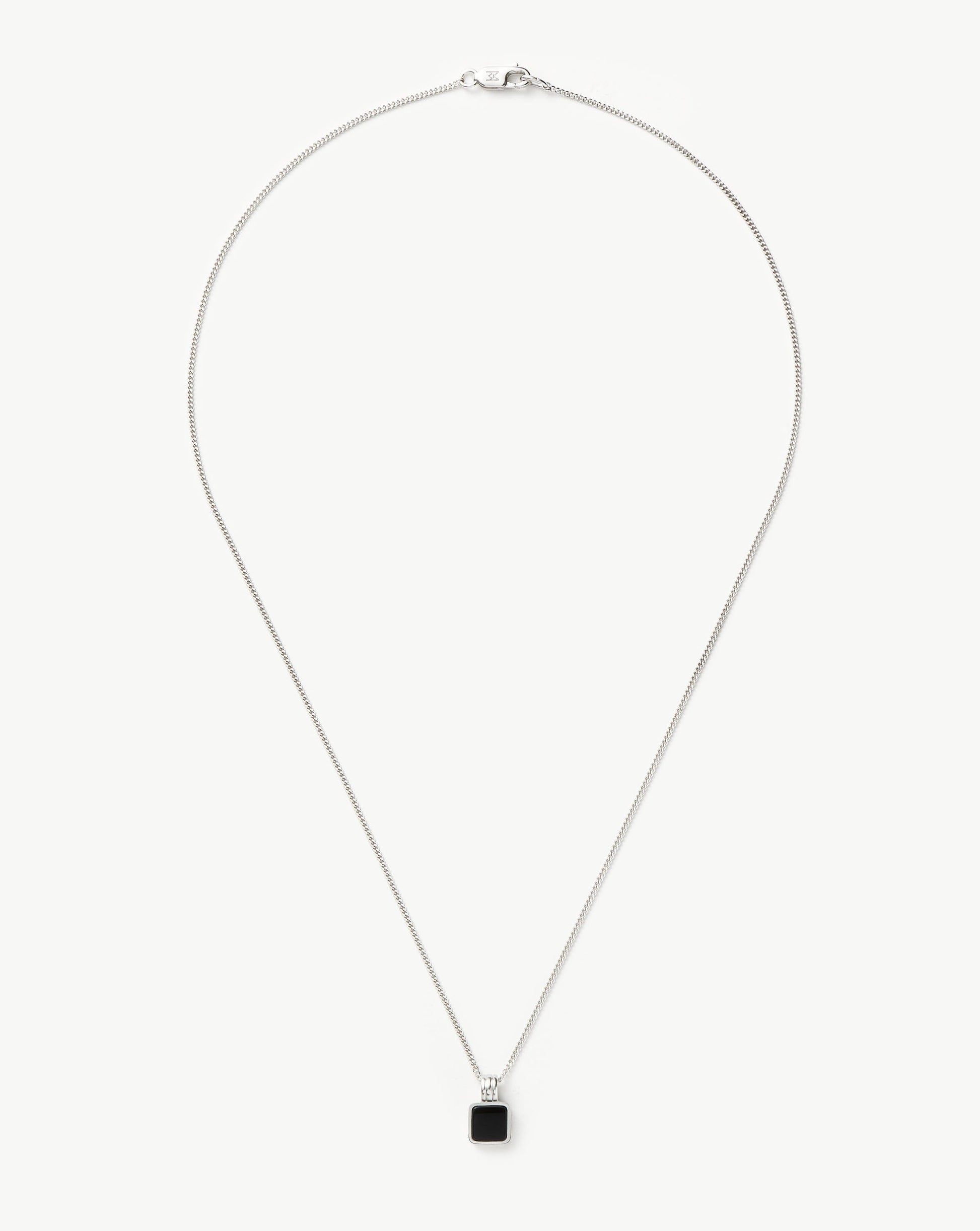 Discover our best selling Lucy Williams x Missoma silver necklace now for men. It features a square black onyx pendant, known as the protection stone, creating a distinctive focal point. It's coupled with our first-ever flat baby curb chain.