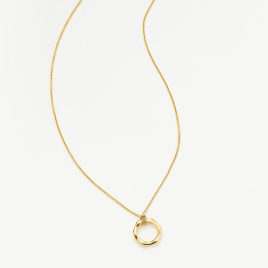 A best selling base layer. Teamed with a delicate chain, the unique mini circular pendant is designed to reflect the look and texture of molten rock. Let it shine solo or team with a gemstone choker to make more of an impact.