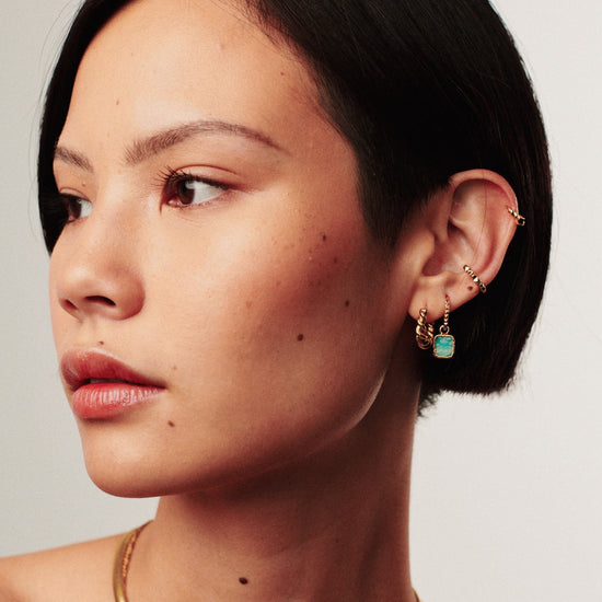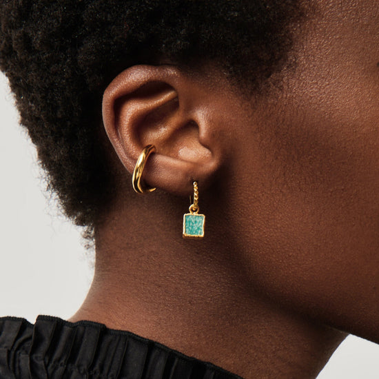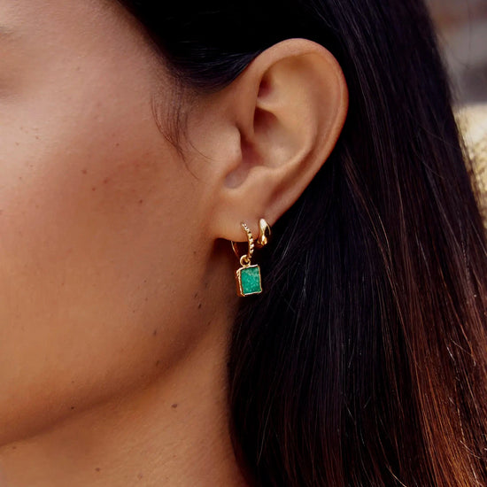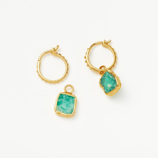 Mini Pyramid Charm Hoop Earrings | 18ct Gold Plated Vermeil/Amazonite Earrings Missoma 18k Gold Vermeil/Amazonite