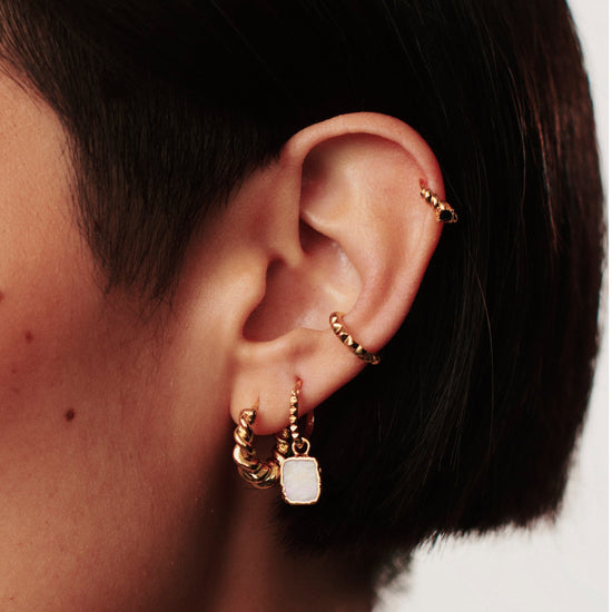 The size of this earring is best for those with smaller lobes, or perfect for second or third piercings.