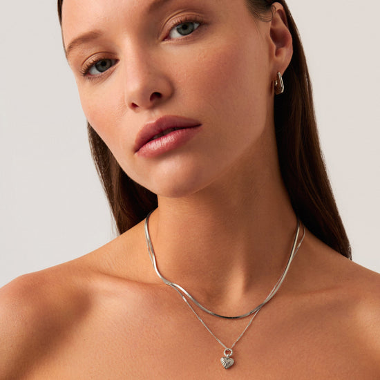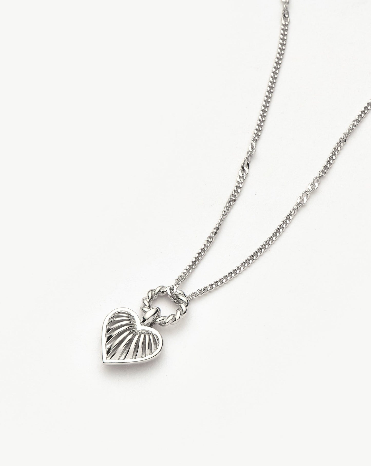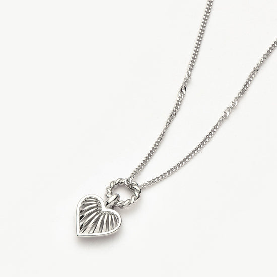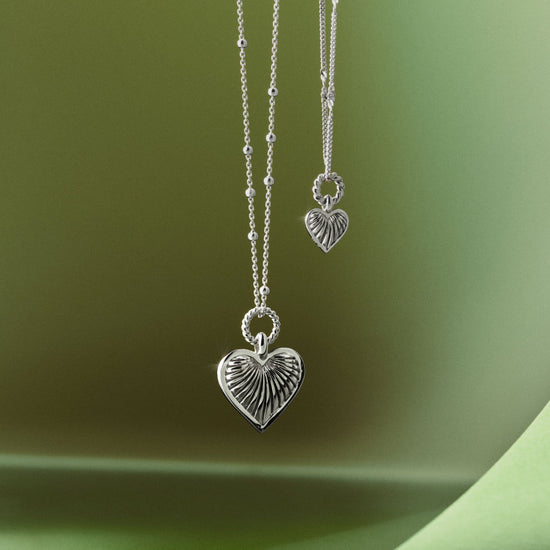 Inspired by our iconic Ridge Heart Charm Necklace – spotted in the Barbie movie – now in a brand-new mini size. Paired with a delicate chain, the mini silver puffed heart pendant features signature ridge detailing and a twisted rope jump ring. Layer with longer necklaces or a delicate choker.