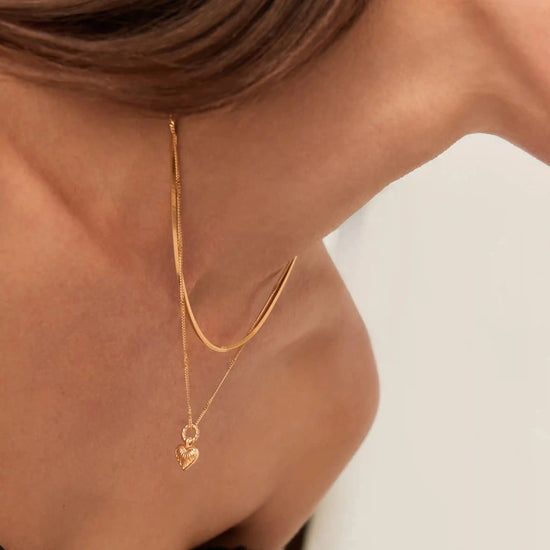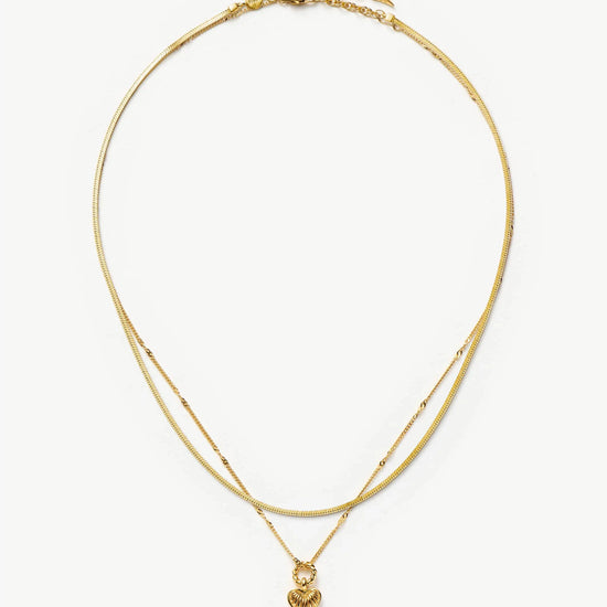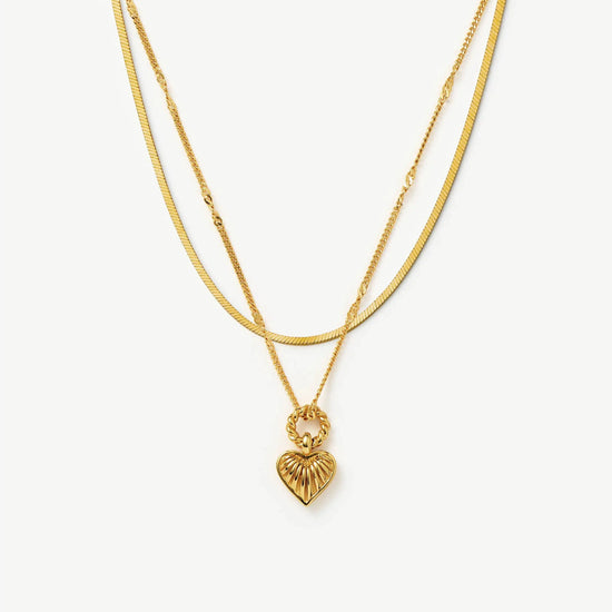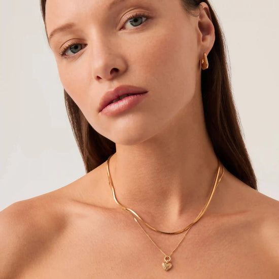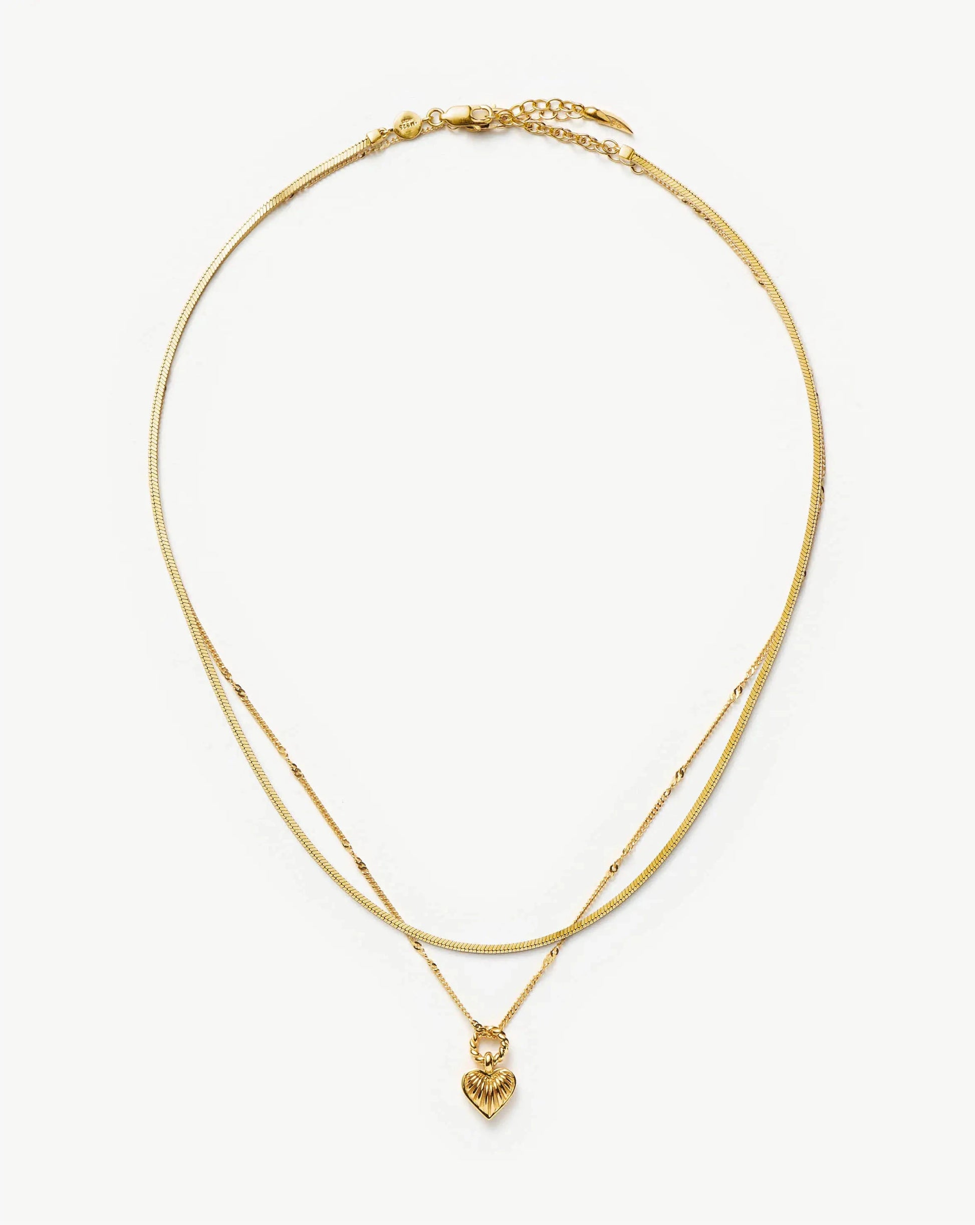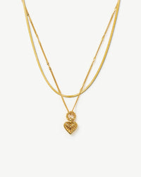 Upgrade your layers with a standout set. Teamed together, the Mini Ridge Heart Charm Necklace and Lucy Williams Short Square Snake Chain Necklace make a unique impact. Save more when buying them together. Worth $503 | Now $422