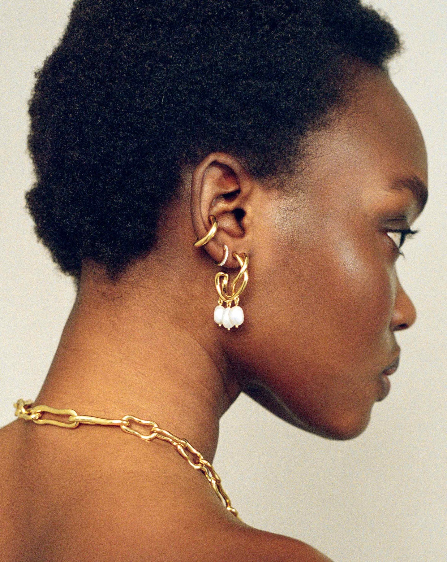 Inspired by organic shapes, this simple ear cuff creates a focal point in your ear stack with a minimalist molten design. The perfect size to wear placed on the conch part of the ear. It slides on easily, no piercings needed. Opt for the molten pearl ear cuff.