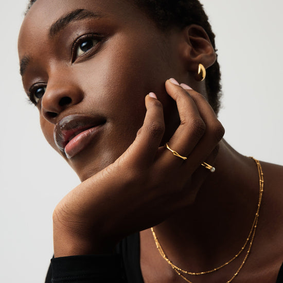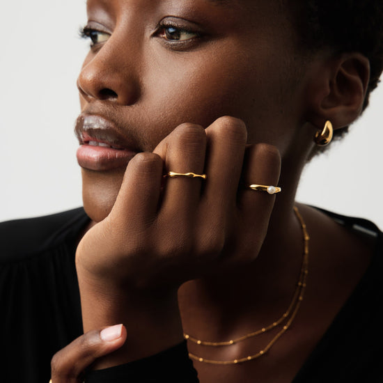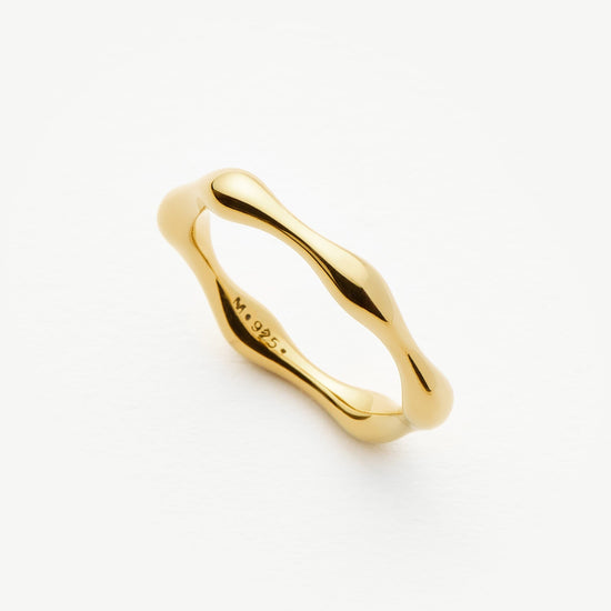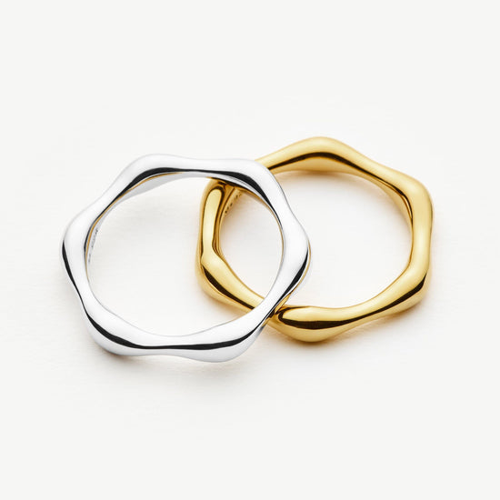 A subtle addition to your ring stack. Designed to reflect the look and texture of molten rock, wear this sleek versatile ring solo or stack a few together for a chunkier, more curated look.