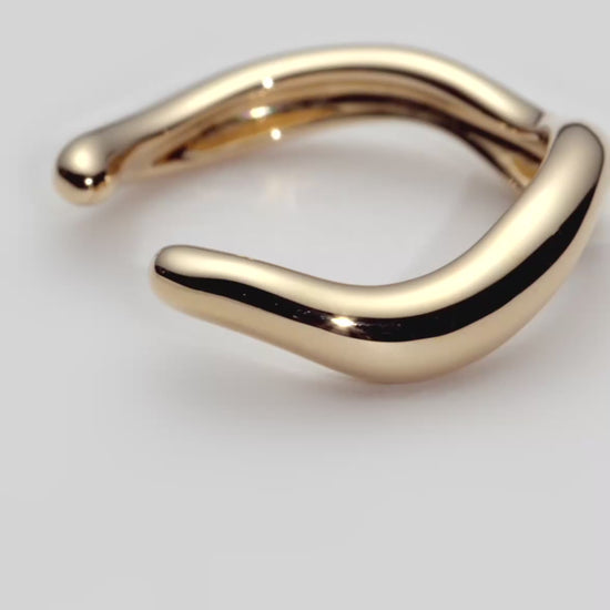 An evolution of our classic molten design, elevated in 14k solid gold. This sculptural ear cuff is perfect for everyday wear. Simply cuff it on your ear and slide from the bottom up for the perfect fit and instant ear stack.