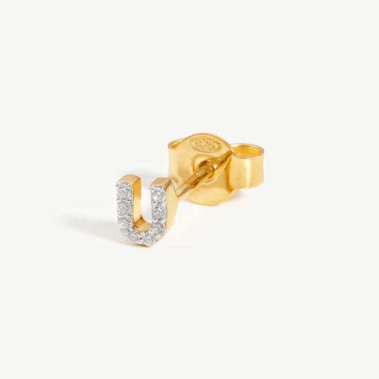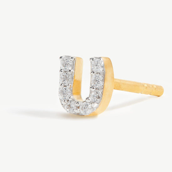 Pave Initial Single Stud Earring - Initial U