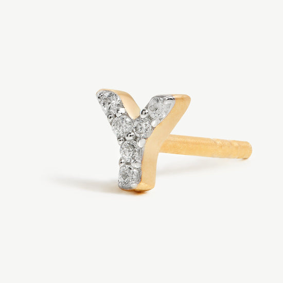 Spell it out. This initial stud earring has been elevated with zircon pavé detailing on a white rhodium finish to personalise your ear stack. Style your initial solo, or stack multiple letters together to create a unique word or message.