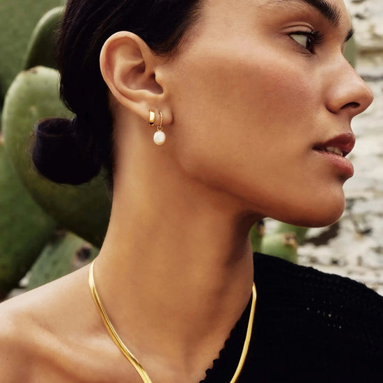 Bring pearls into your ear stack with these small twisted hoops. The everyday earrings feature a hidden hinge for a seamless closure. Two styles in one — remove the charm to wear the hoops on their own for a simple statement.