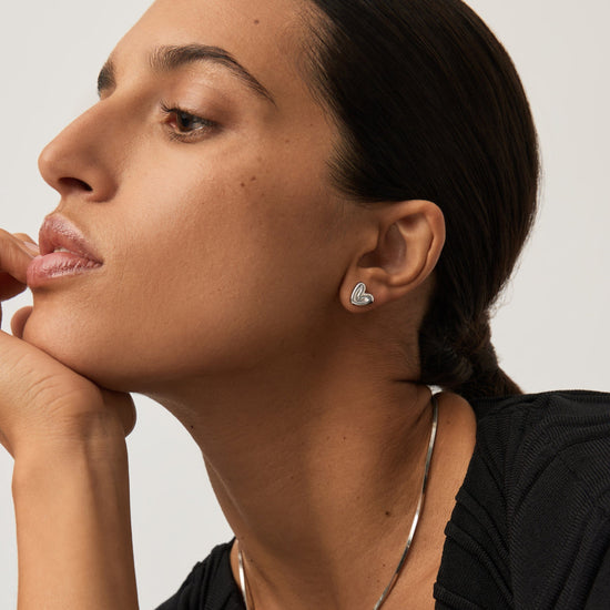 These heart-inspired mini stud earrings feature a sculptural puffy design. Stack them with mini hoops and even more studs.