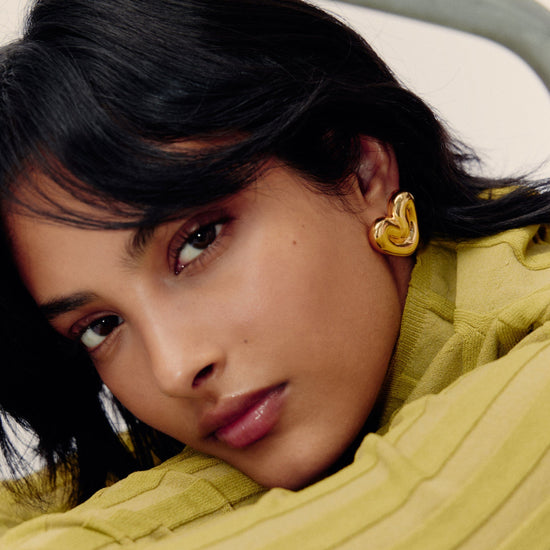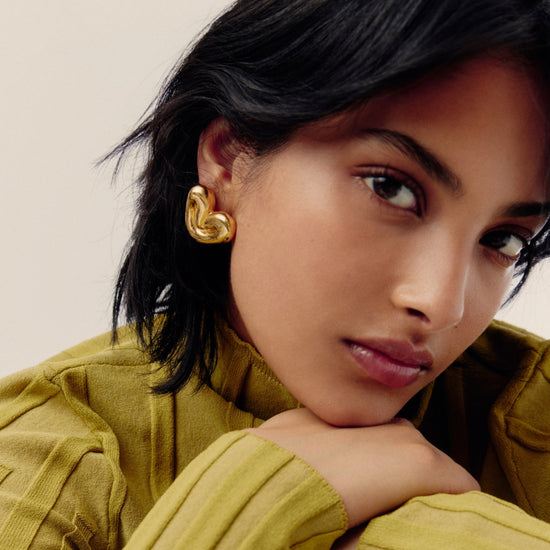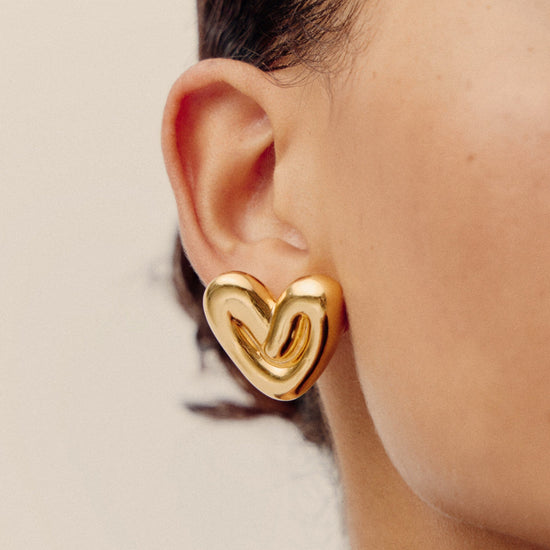 Make a statement with these bold large stud earrings, featuring a sculptural puffy heart design. Let them shine solo or stack with studs and mini hoops.