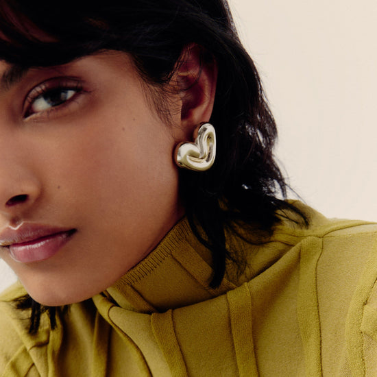 Make a statement with these large stud earrings, featuring a sculptural puffy heart design. Let them shine solo or style with plain studs for contrast.