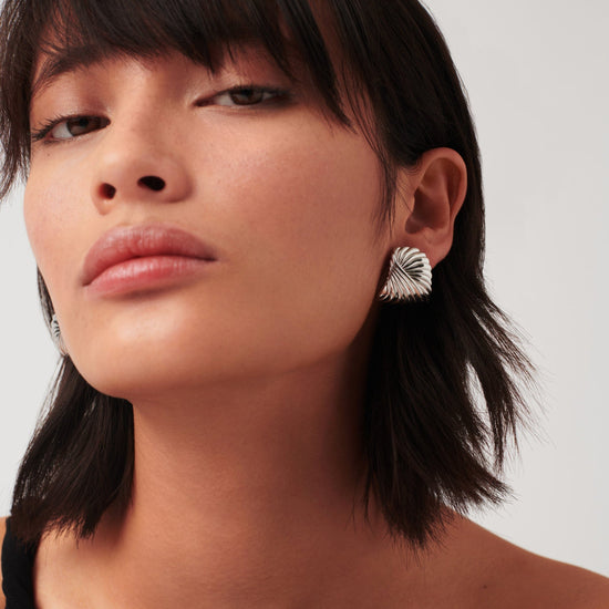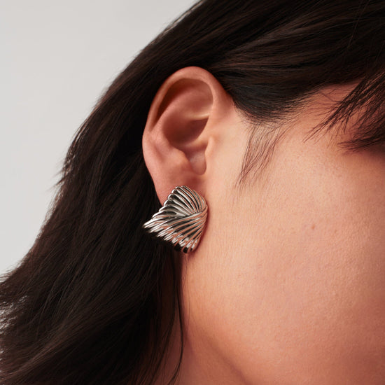 Go overstated with these large standout silver studs, featuring signature ridge detailing for a ripple effect. Let them take centre stage or style with studs for an instant ear stack.
