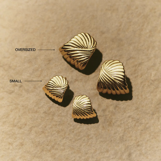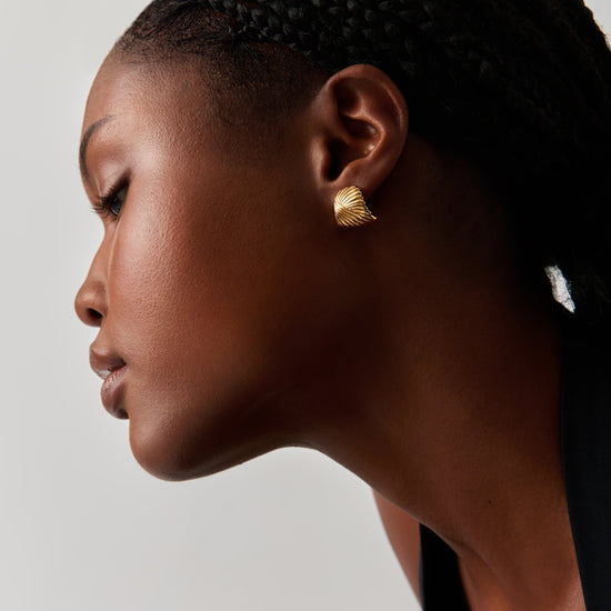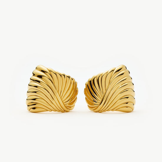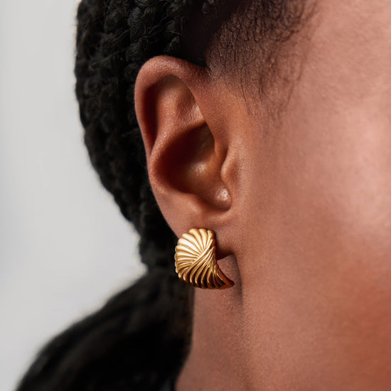 These standout gold studs feature signature ridge detailing for a ripple effect. Let them take centre stage or style with studs for an instant ear stack. Also available in oversized.