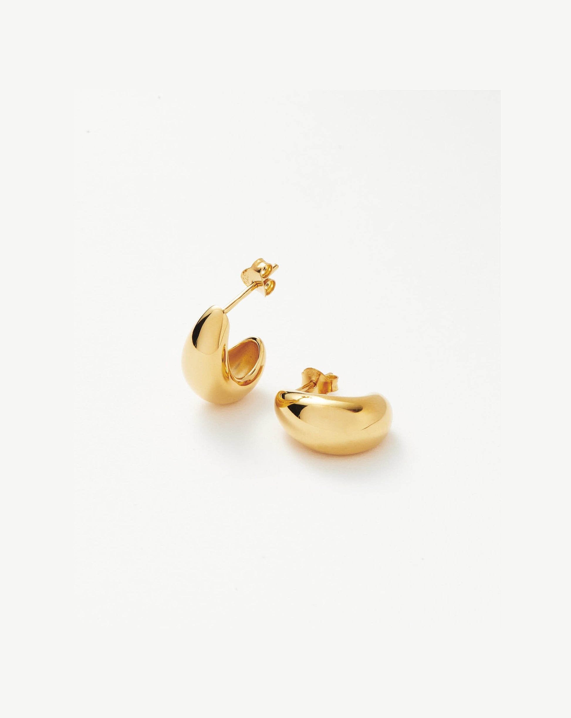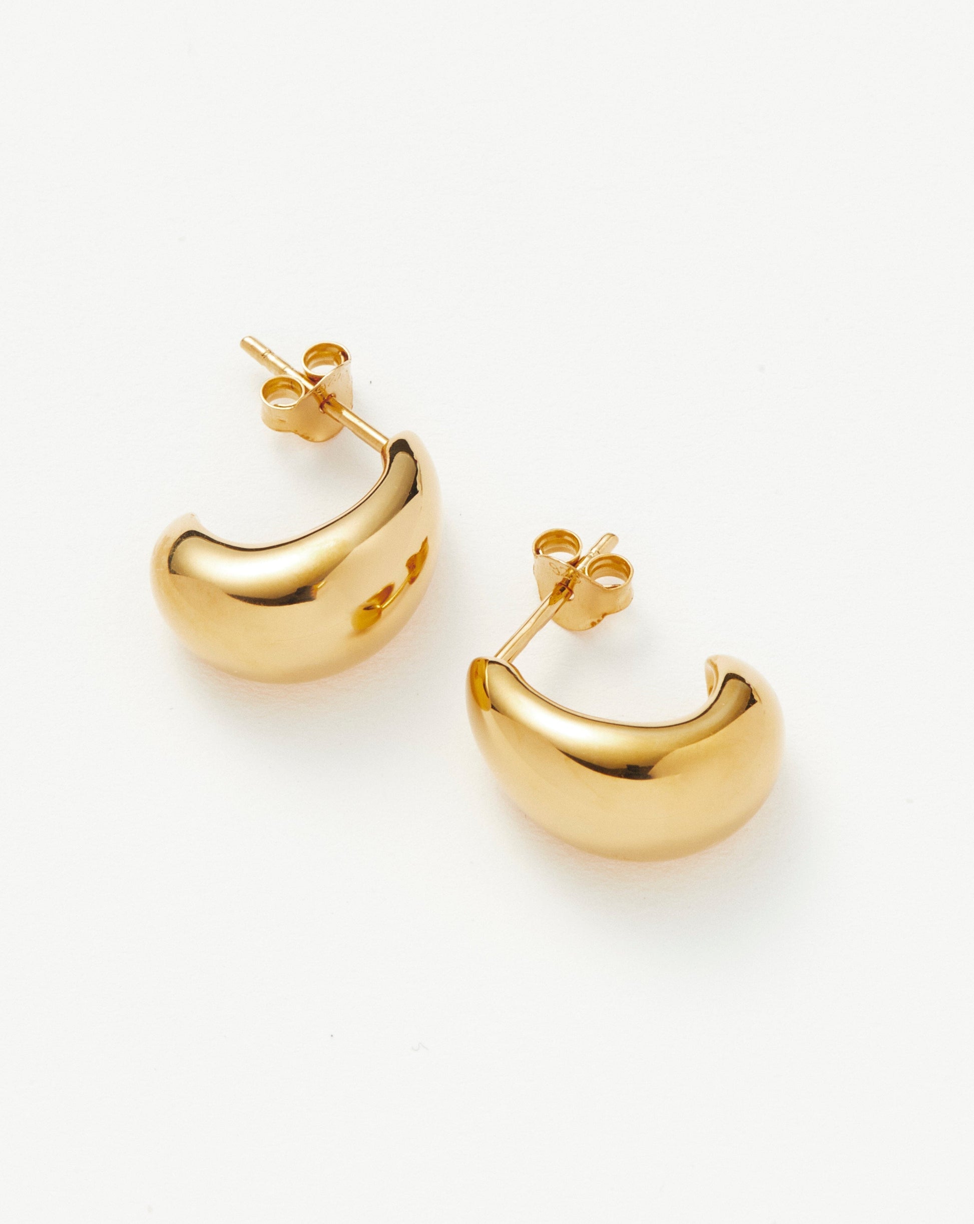 Pared-back modern meets vintage. These mini sculptural huggies hug the ear lobe with a minimalist domed design, fastening with a butterfly closure. Pair with the medium Dome Hoops to create a scaled hoop ear stack. Also available in small. The size of this earring is best for those with smaller lobes, or perfect for second or third piercings.