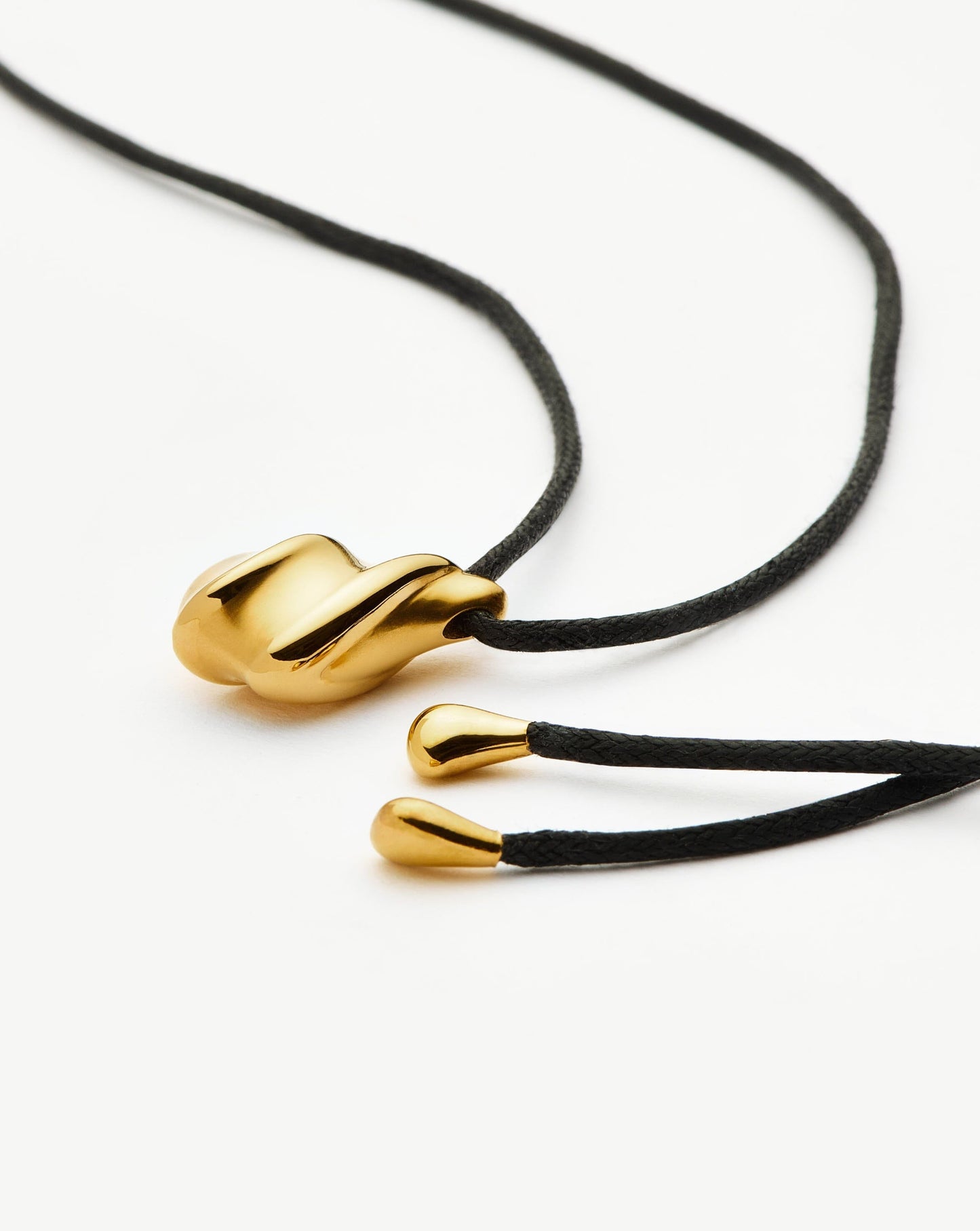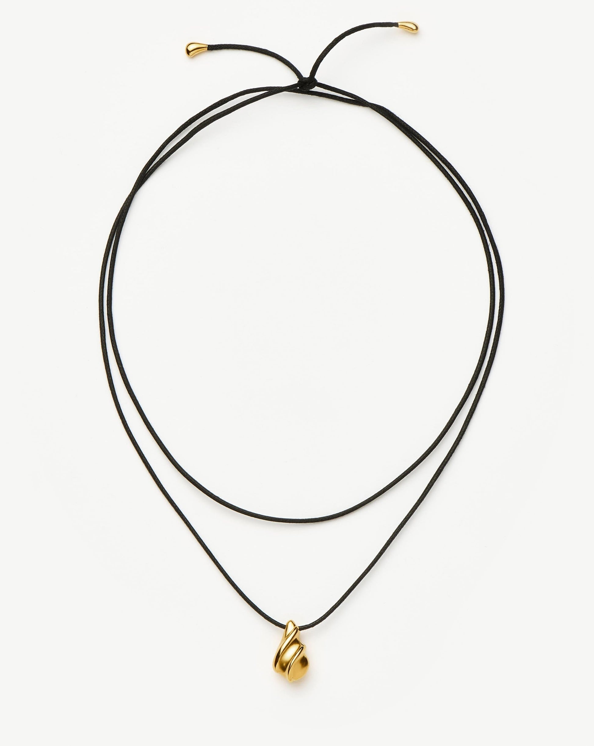 This signature droplet pendant necklace features matte and high shine detailing, combined with a long black cord necklace. The cord can be tied at any length, doubled up as a choker, or worn long — your new everyday staple.