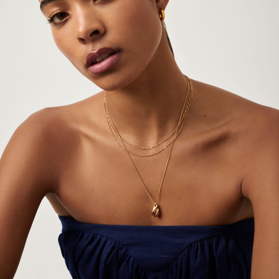 Set on a delicate trace chain, this signature droplet pendant features our signature Savi 'S' shaped droplet charms – with a matte and high shine finish – is the perfect starting point for your stack. Wear as the base layer to create a unique focal point for your layers.