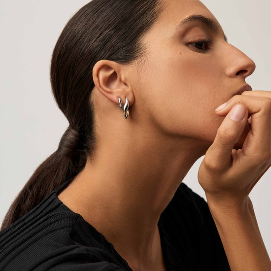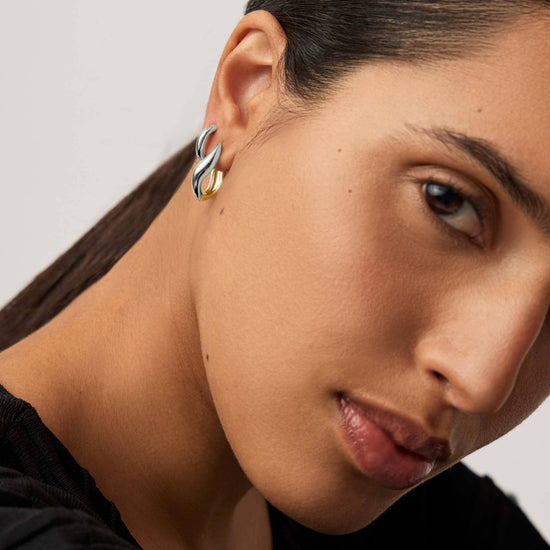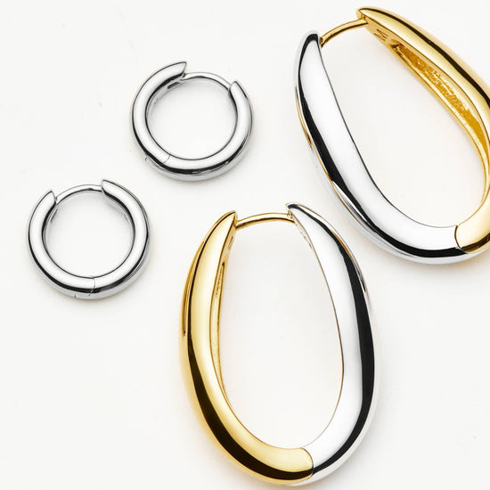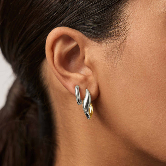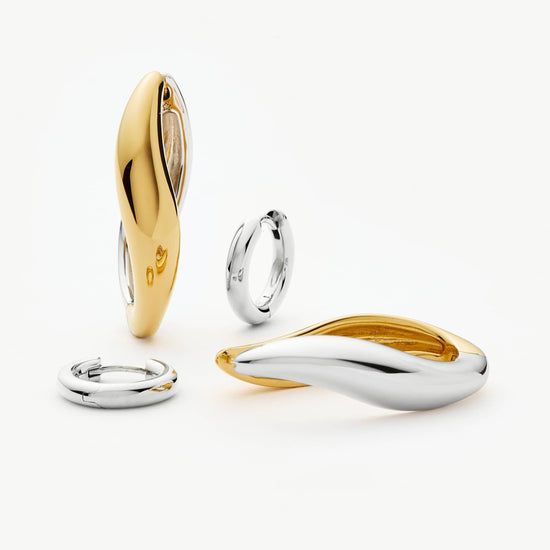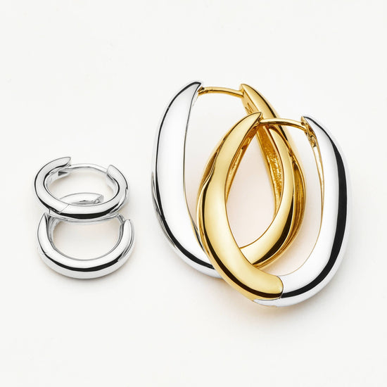 Upgrade your ear stack with an everyday set. The Classic Tunnel and Savi Signature Small Hoop Earrings blend gold and silver together for a distinctive finish.