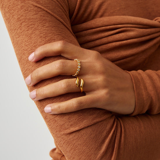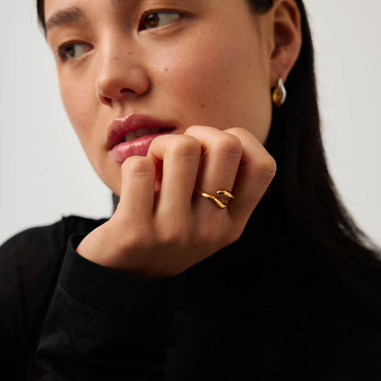 This signature Savi 'S' stacking ring wraps around the finger to create a double ring effect. Wear solo or pair with chunkier rings for contrast.
