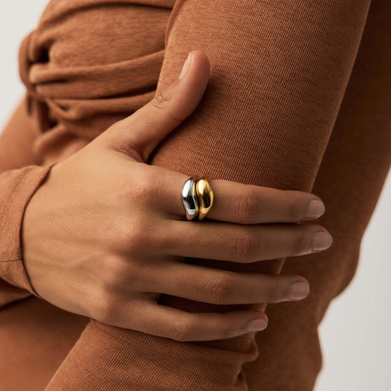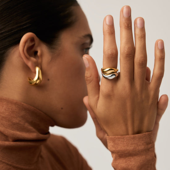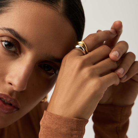This signature ring set features two sculptural Savi 'S' shaped bands that fit together to create one statement ring. Style separately or stack together. Worth $308, now $265.