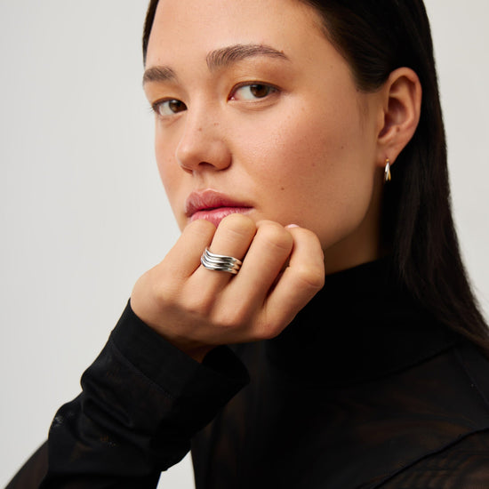 This standout triple ring features our signature Savi 'S' shaped detailing, for the look of three rings in one. Wear this statement style solo or contrast with more delicate stacking styles.