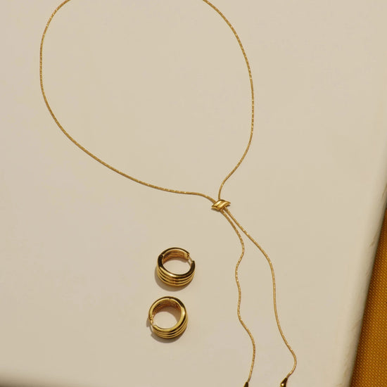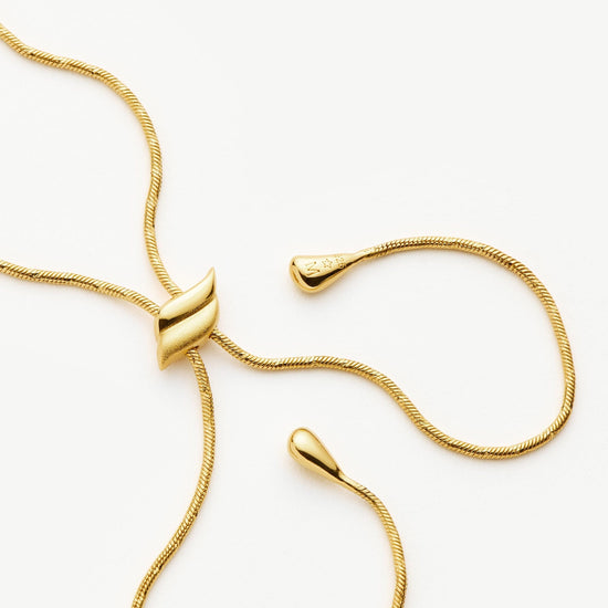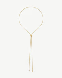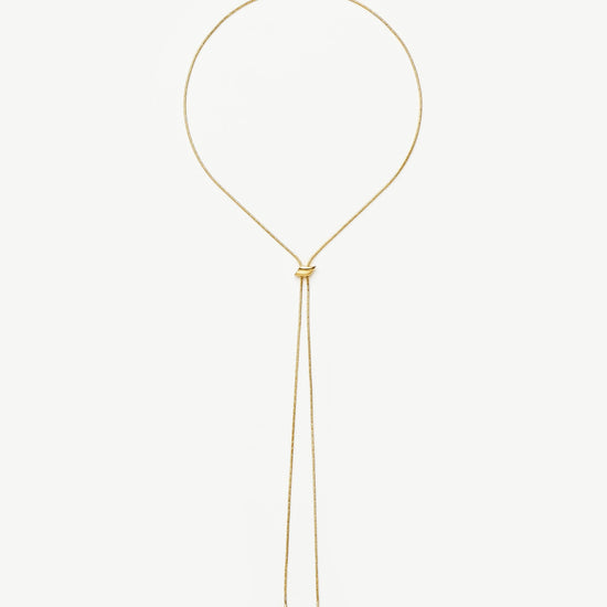 This statement lariat necklace features two droplet pendants with a matte and high shine finish, as well as an adjustable signature Savi 'S' slider for added versatility. Wear your way as a choker or as a medium necklace.