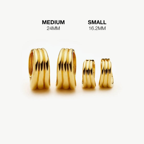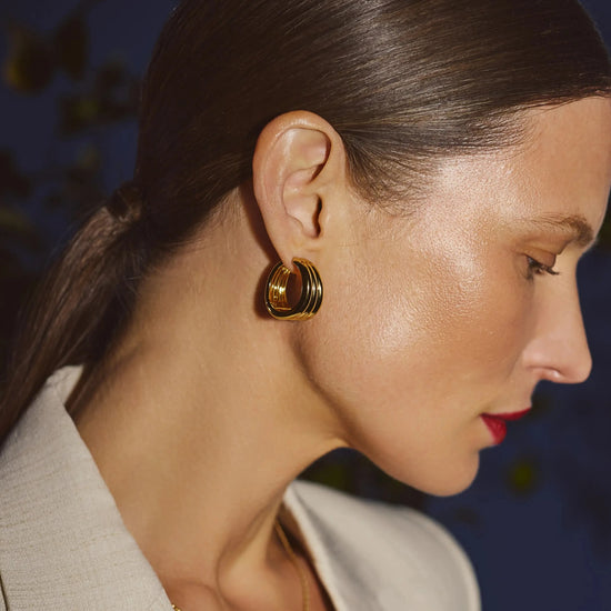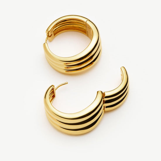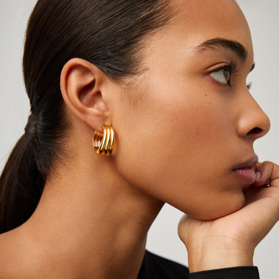 Make a statement with our signature Savi 'S' triple hoop earrings. These standout high shine earrings give the illusion of three hoops in one. Let them take centre stage or style with studs for an instant stack.