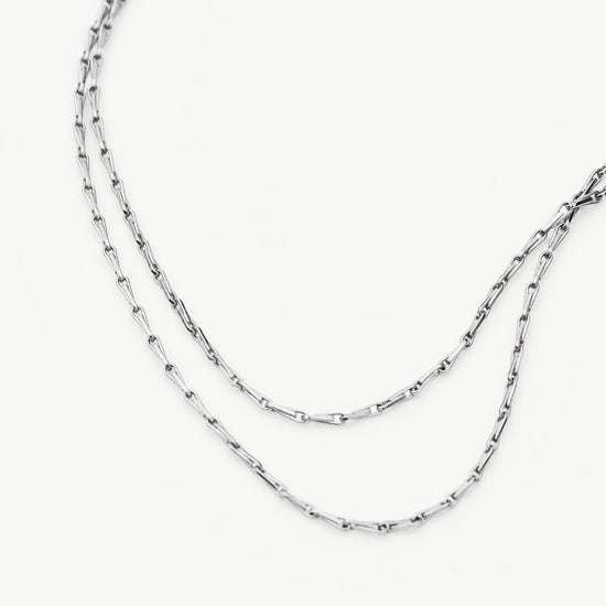 This high-shine necklace features two strands of vintage-inspired links. Giving the look of two chains in one, pair with the Savi Ridge Droplet Pendant Necklace to add contrast.