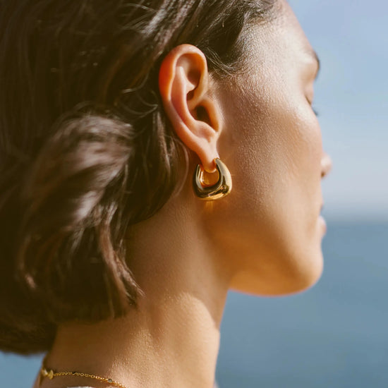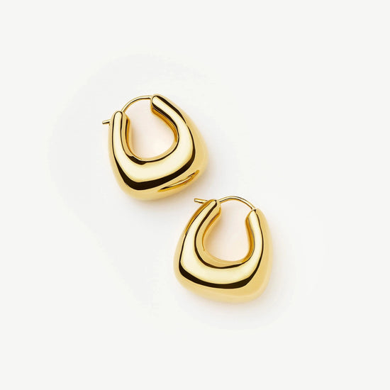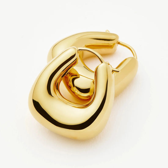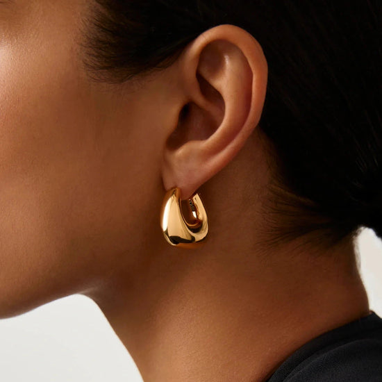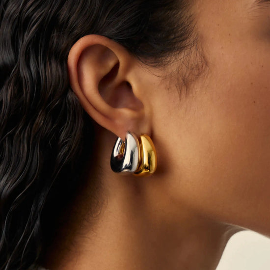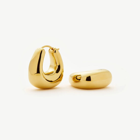 Inspired by sculptural shapes, these everyday chunky hoops feature a molten puffy design. Pair with studs for an instant ear stack.