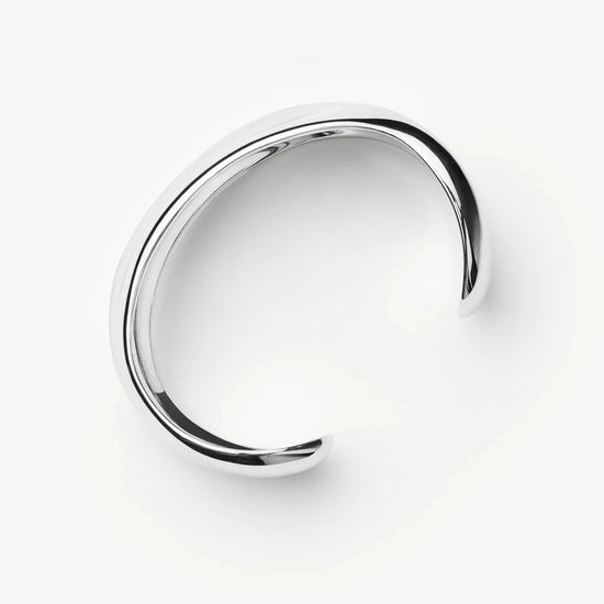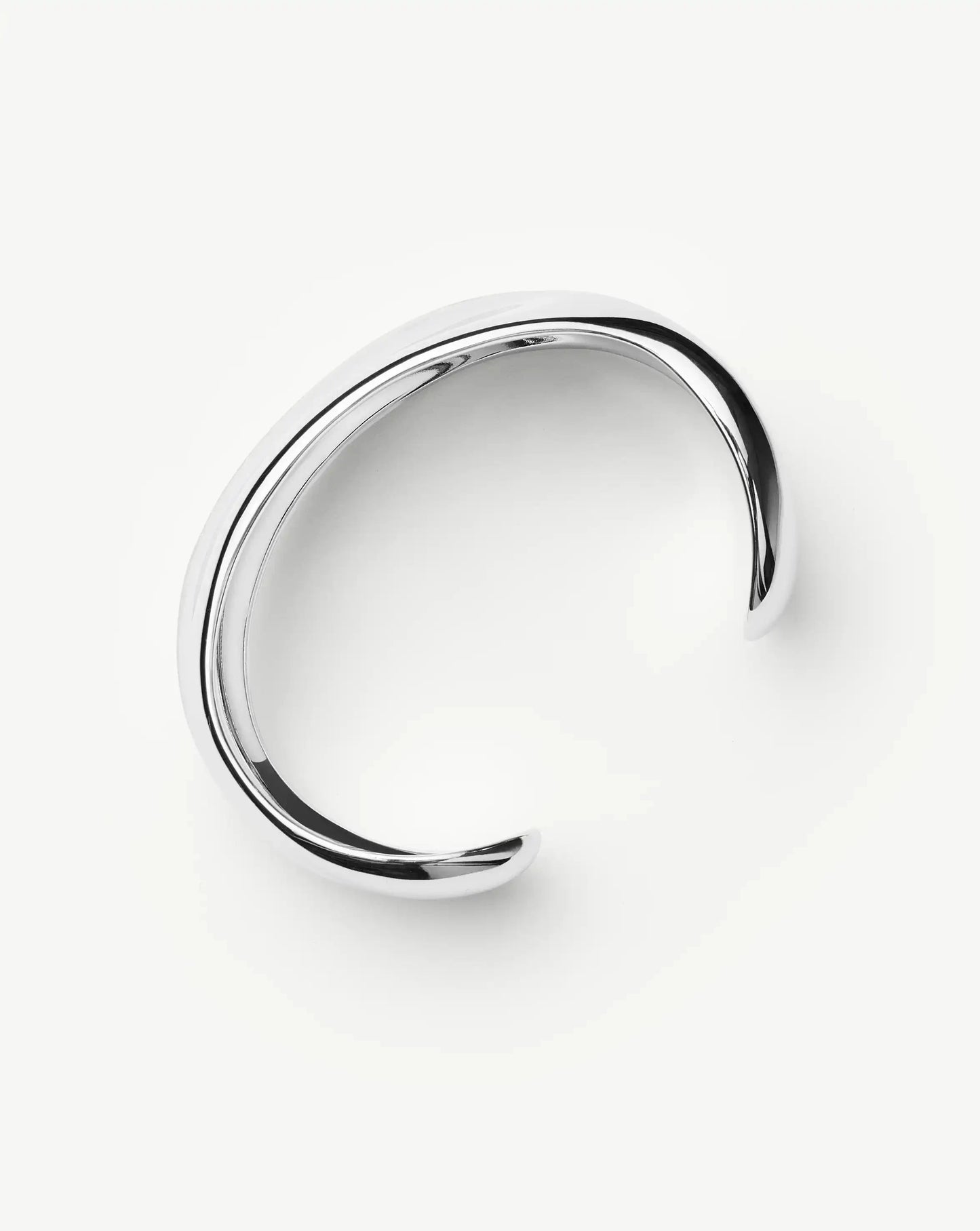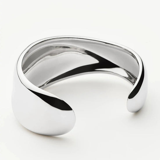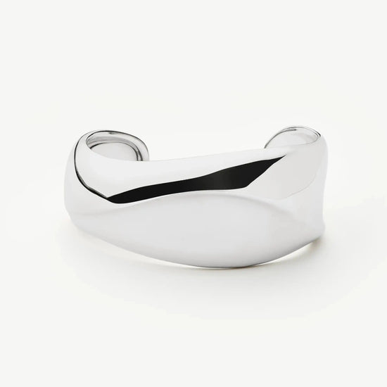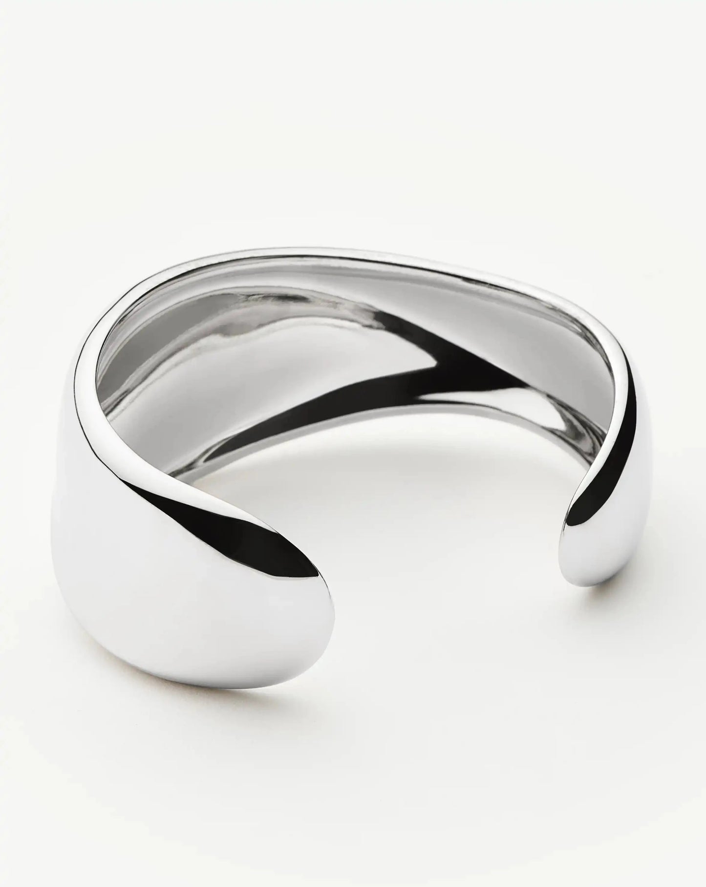 Inspired by sculptural shapes, this maximalist, chunky cuff bracelet features a molten design with ridge detailing. Let it shine solo to make a statement.