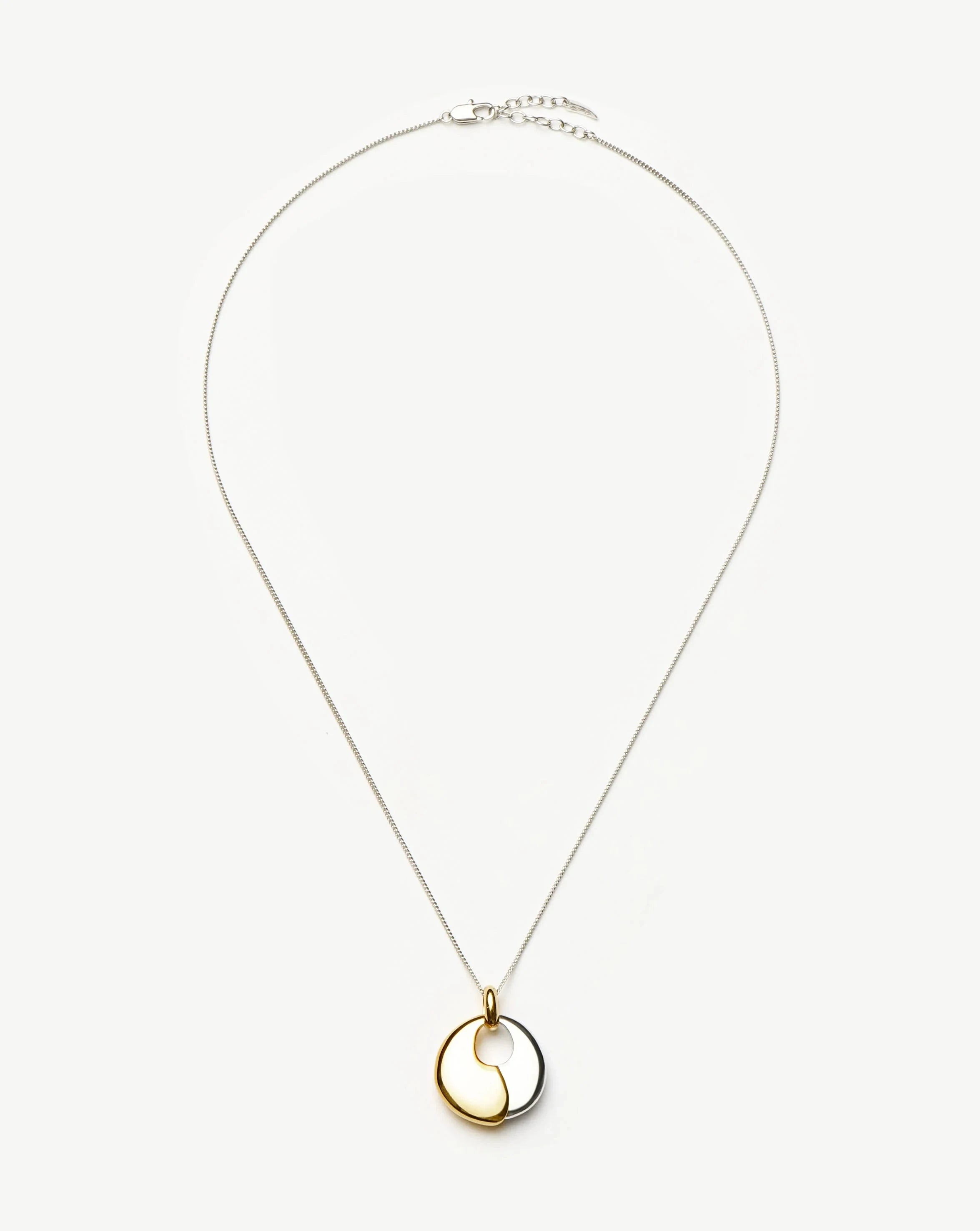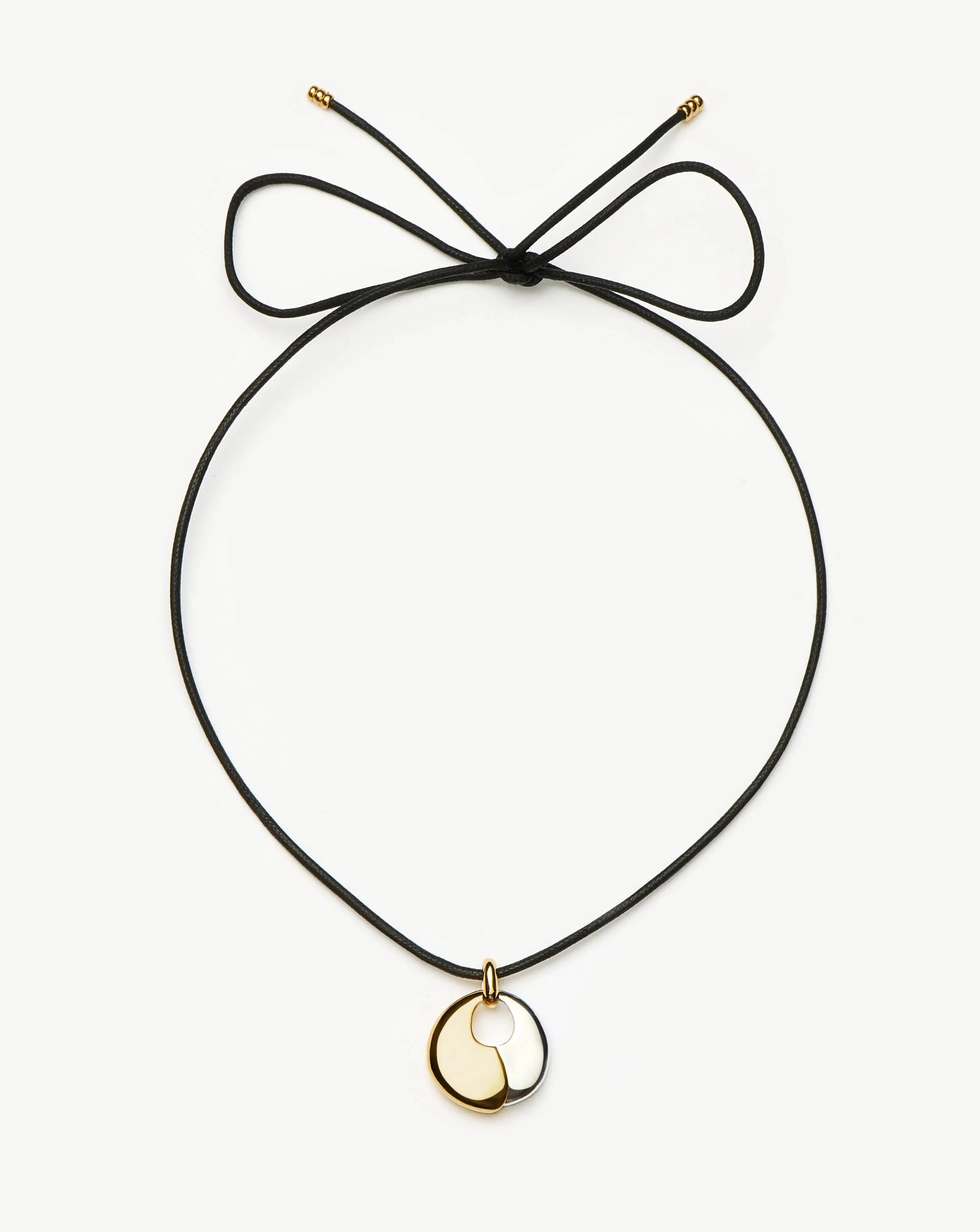 Inspired by sculptural shapes, this necklace set features a unique mixed metal pebble-inspired pendant combined with a simple chain necklace or a long black cord necklace. The cord can be tied at any length, doubled up as a choker, or worn long — your new everyday staple.
