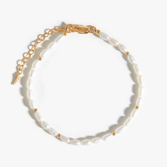 Inspired by natural forms. Bringing wisdom and knowledge, freshwater seed pearls form this unique anklet, contrasted and offset with small gold beads for a distinctive finish. The ultimate way to upgrade your ankle game.