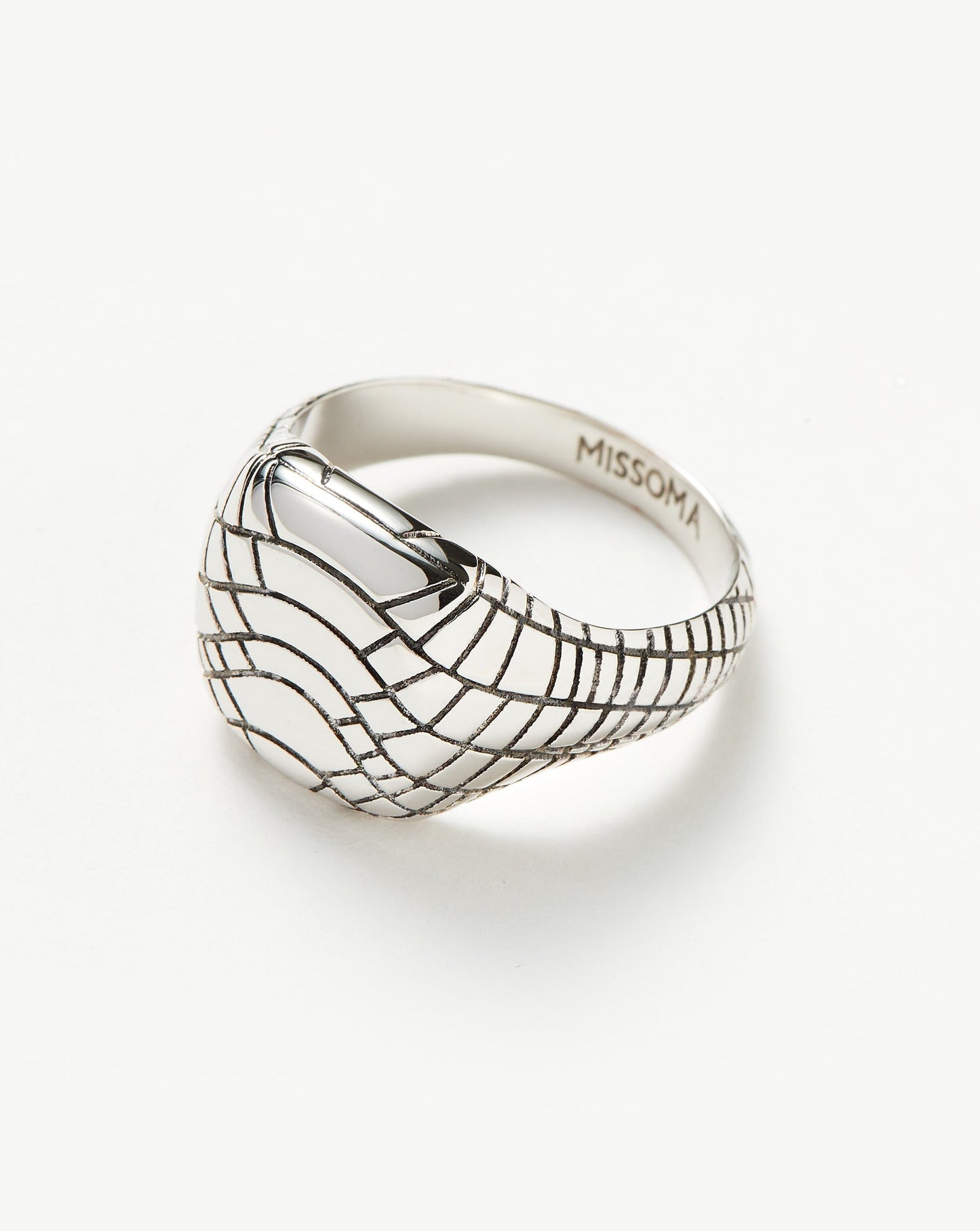 This statement signet ring features an engraved snakeskin texture, engraved with black rhodium, that adds drama to your ring stack. Wear alongside black enamel and black onyx rings for an even bolder look.