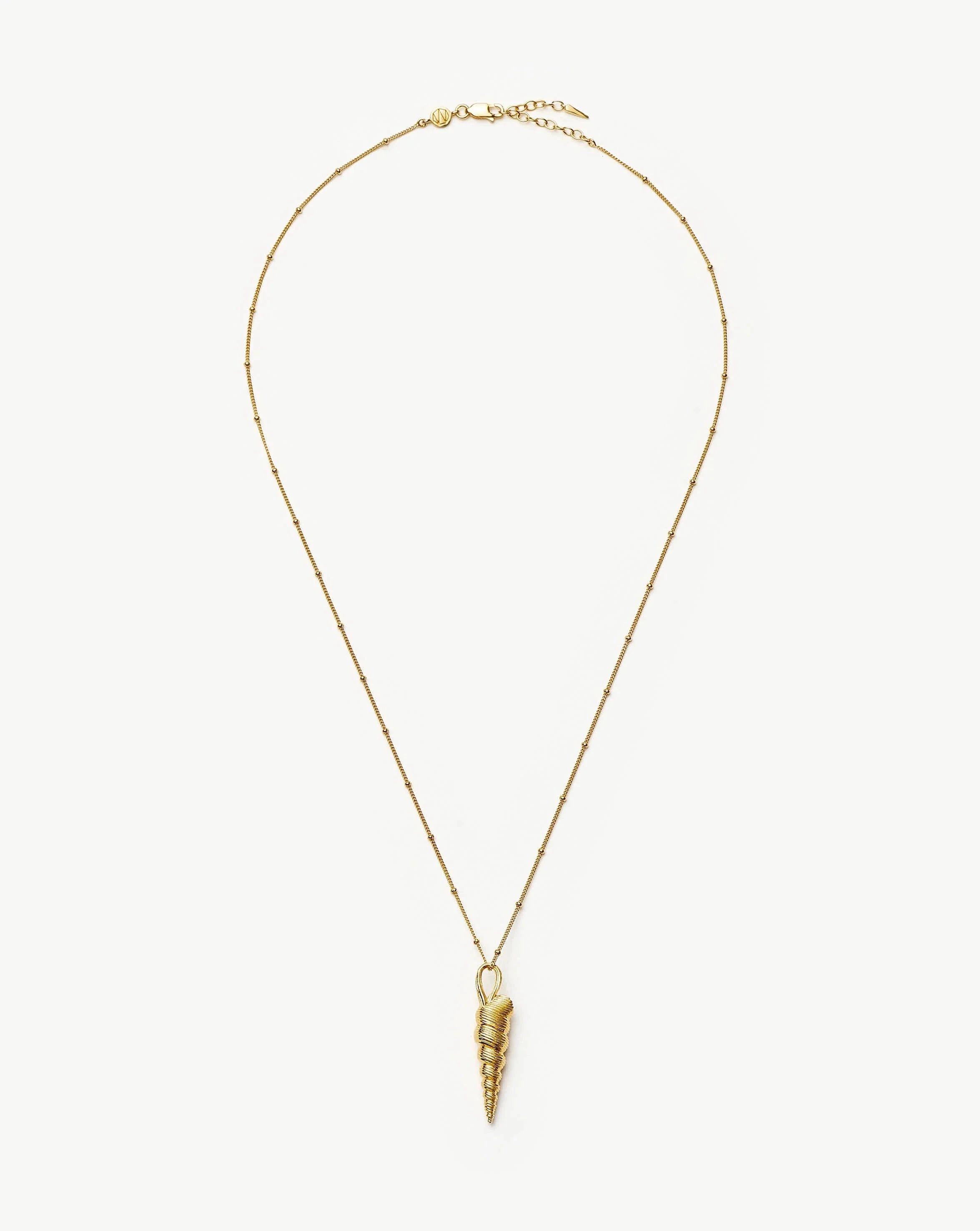 A must-have this summer is the Shell Ridge Pendant Necklace. A shell cone element features on our classic bobble chain necklace. Wear solo or style with chokers or oversized stud earrings to elevate your summer outfit.