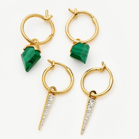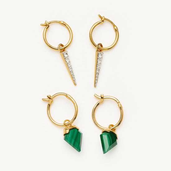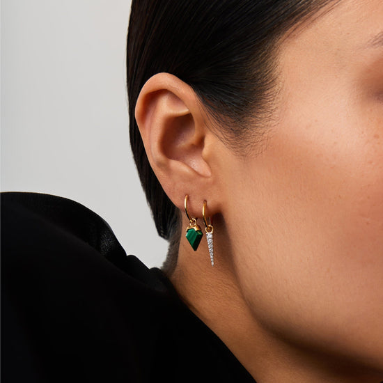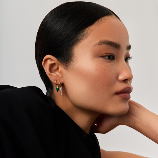 Upgrade your ear stack with a semi-precious gemstone earring set. Teamed together, the Mini Shield Hoop Earrings and Mini Pave Spike Charm Hoop Earrings create a unique stack you'll never want to take off. Save more when buying them together.