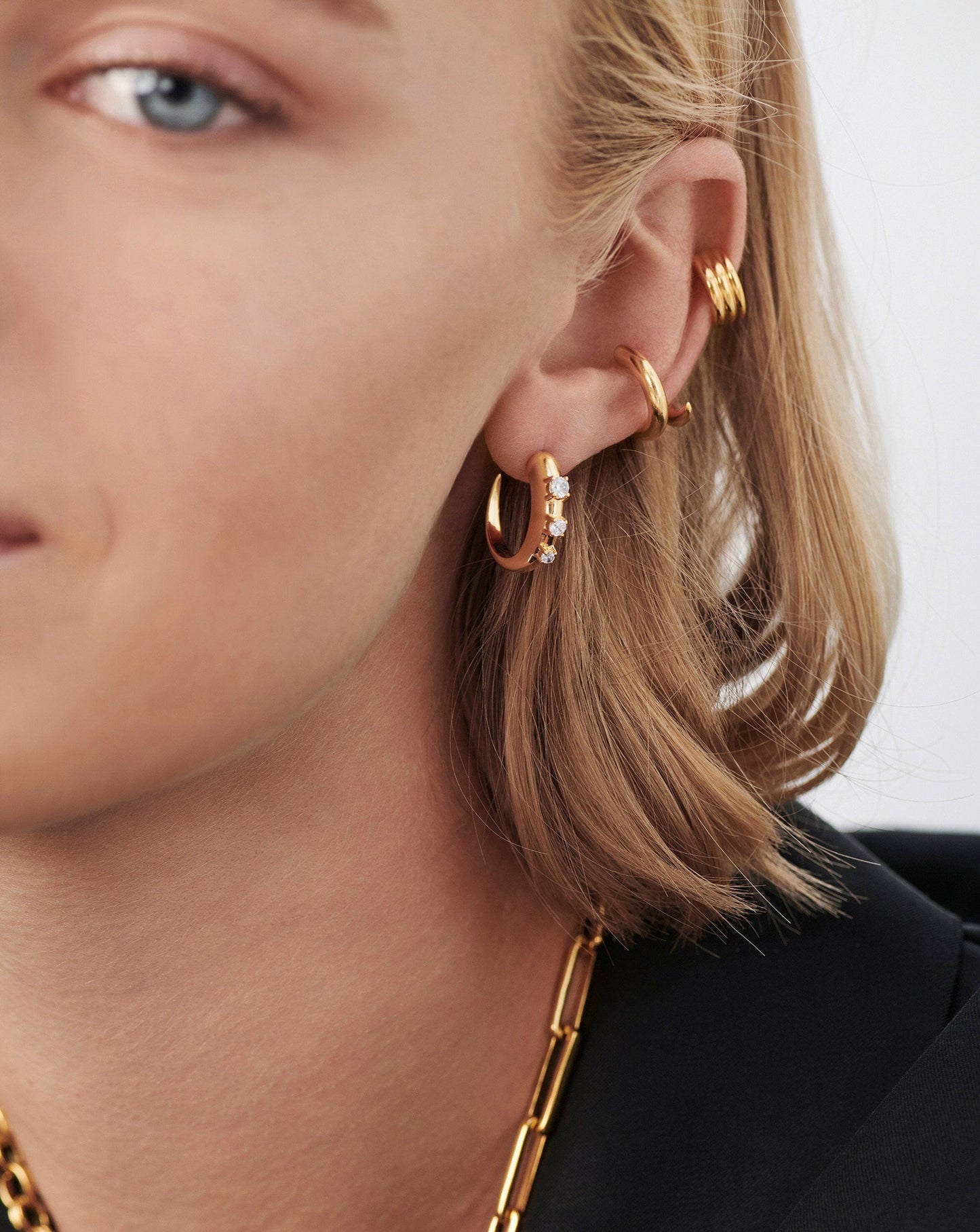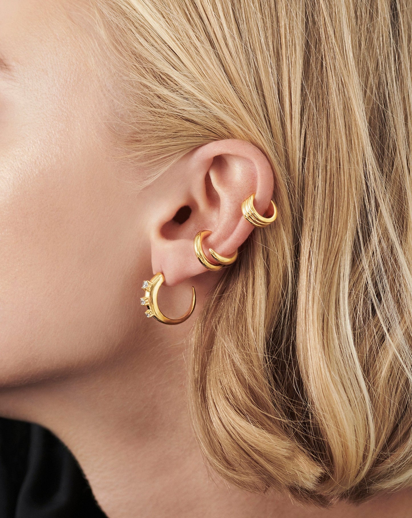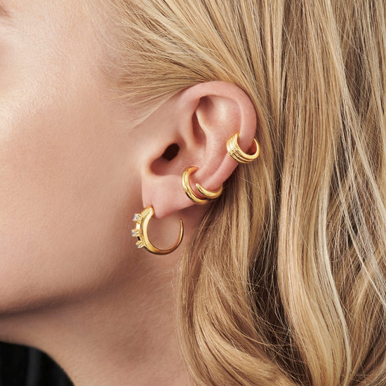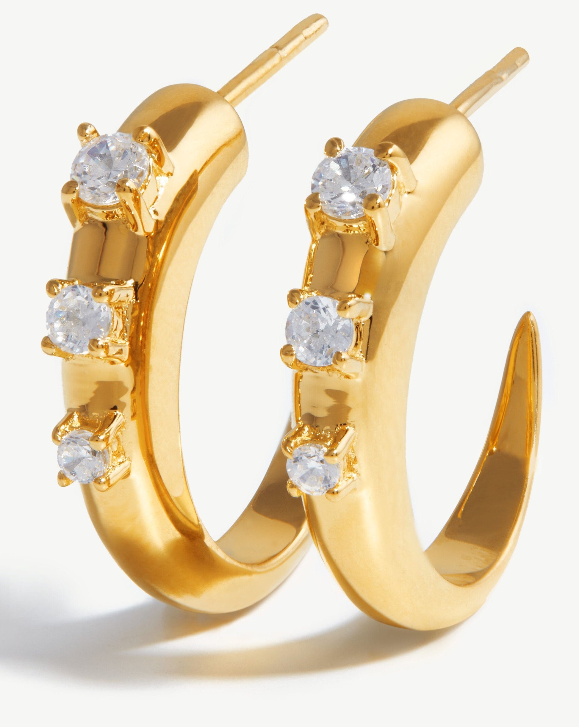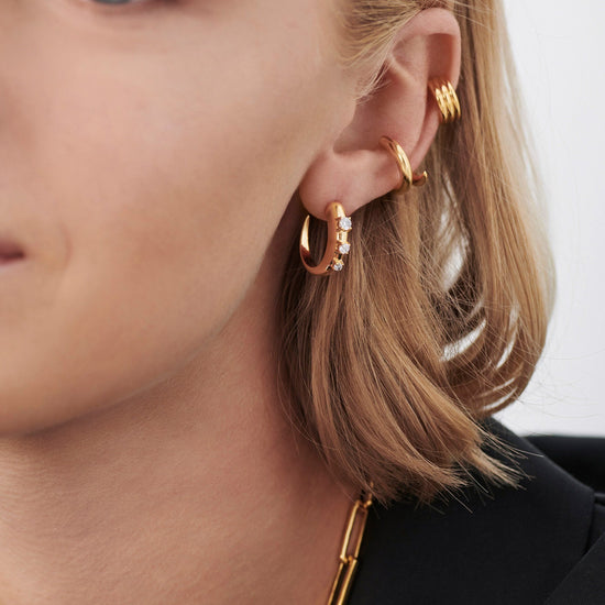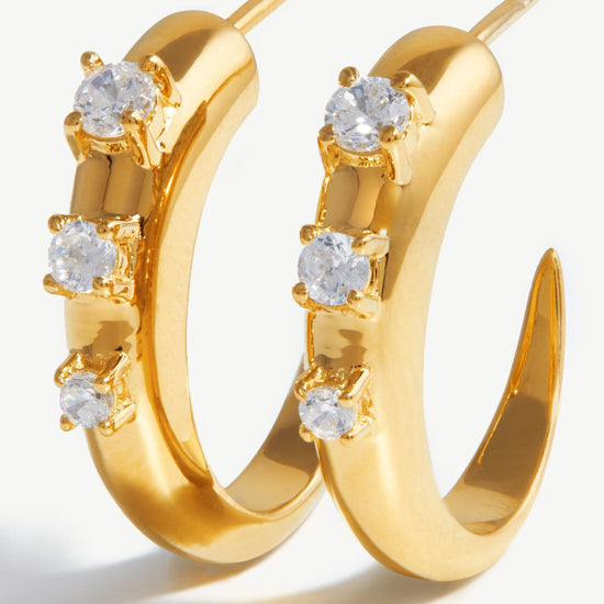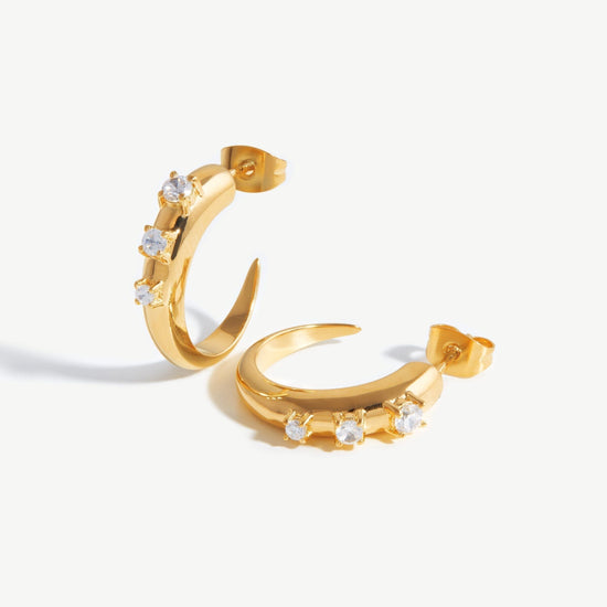 Our signature plain Claw hoops have been upgraded to feature cubic zirconia studded detailing for a subtle statement. Fastening easily with a butterfly closure, style solo or stack with other studs and huggies.