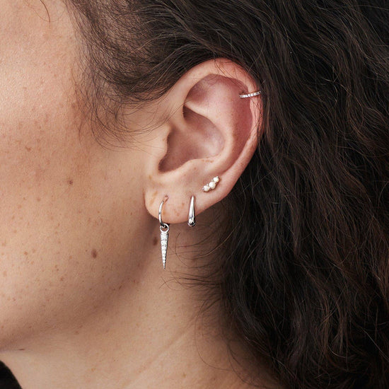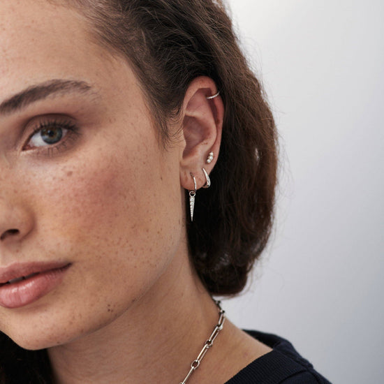 Turn on the charm. Wear these best selling small charm earrings with pavé-set spikes for a subtle twist to your everyday ear stack. Lend your look some impact by wearing two pairs together at once. Remove the charms to wear the hoops solo. The size of this earring is best for those with smaller lobes, or perfect for second or third piercings.
