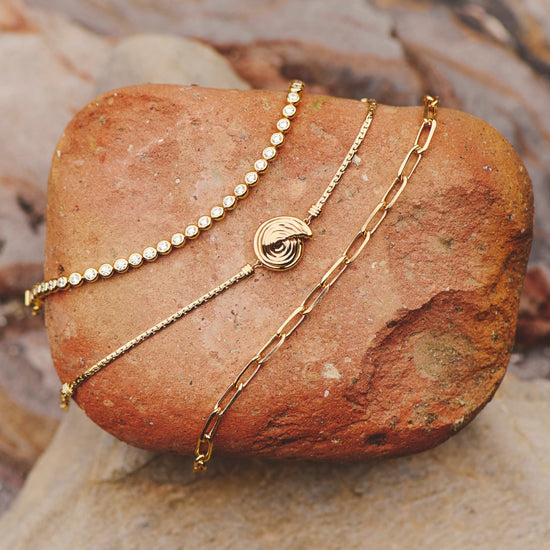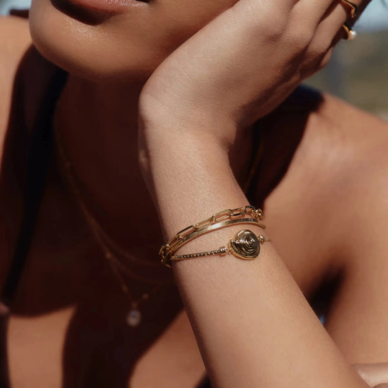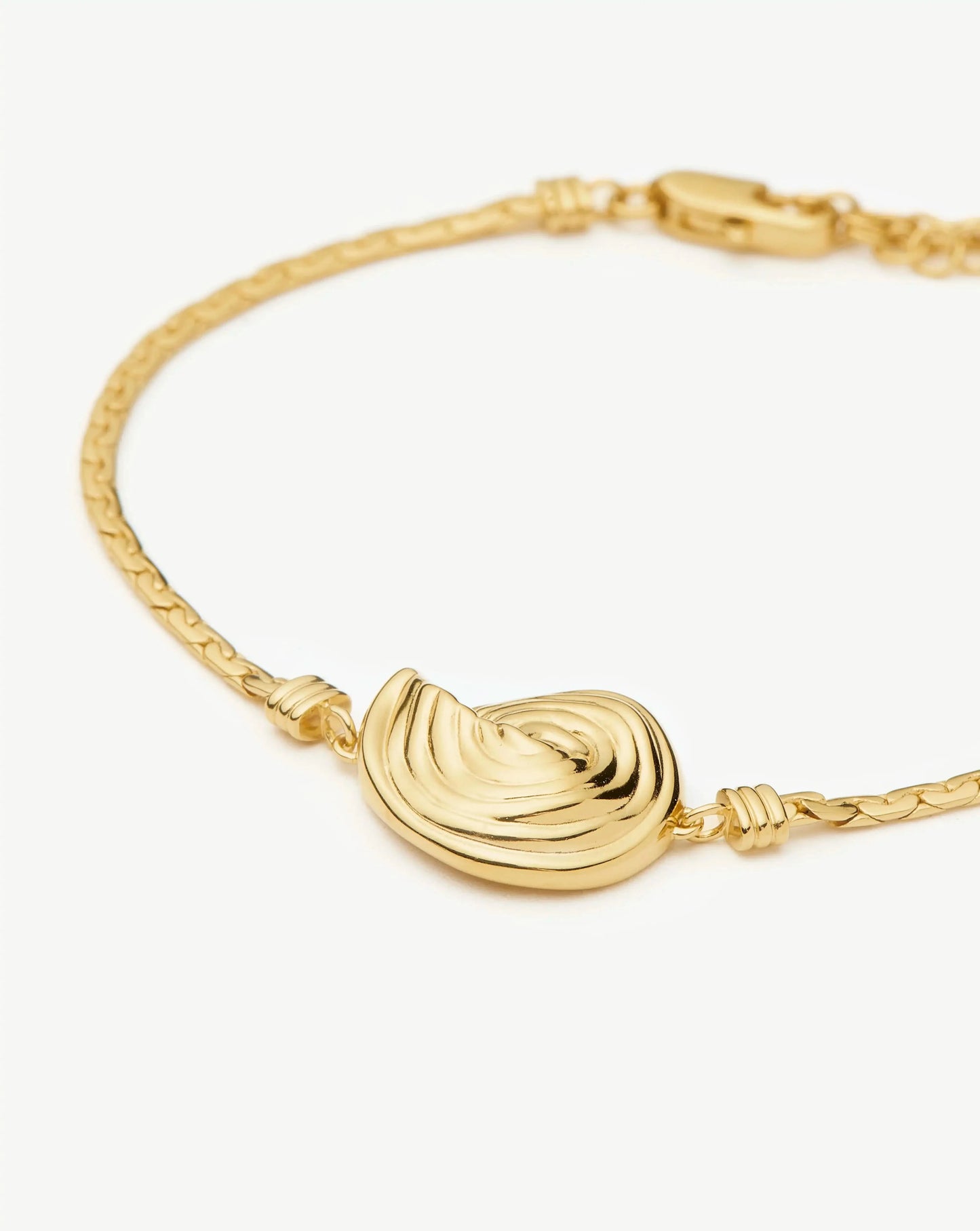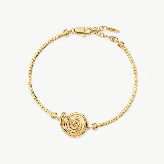 A classic addition to your jewelry collection, this cobra chain bracelet features a small gold spiral element. Perfect to wear solo in the daytime or layer with gold cuffs or bangle bracelets for a statement evening look.