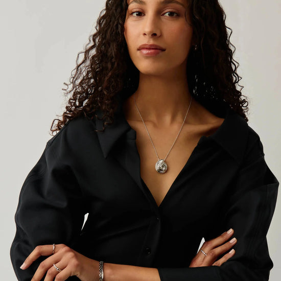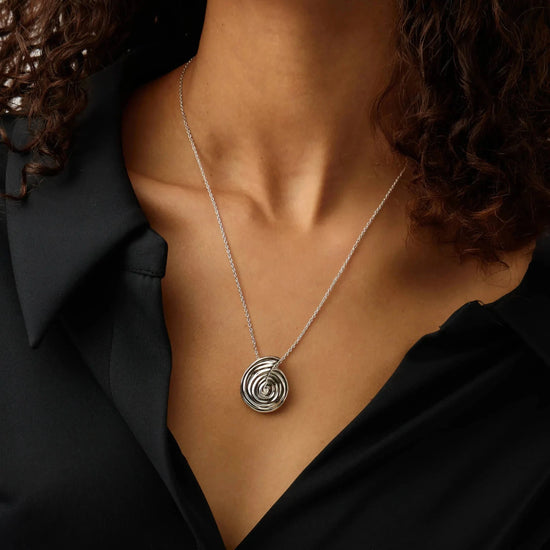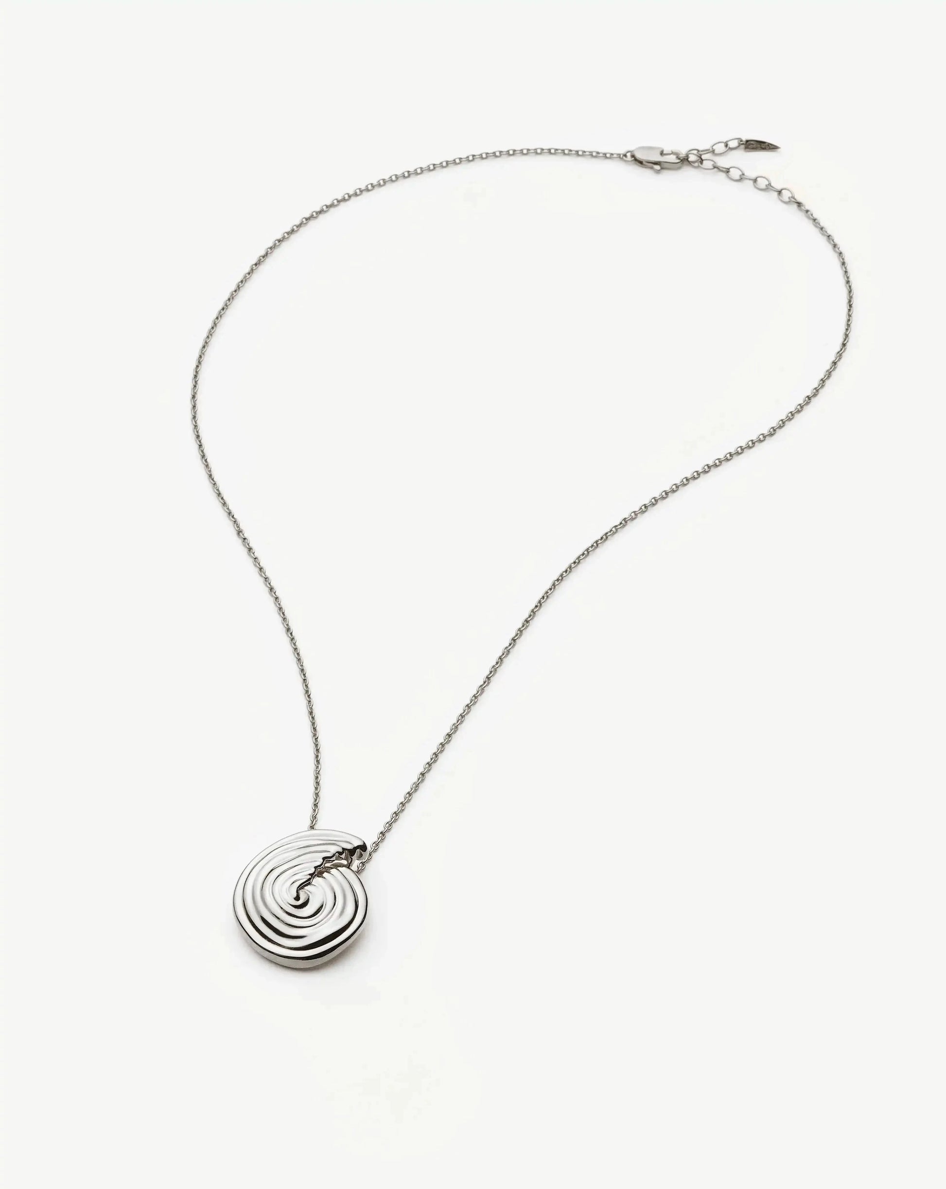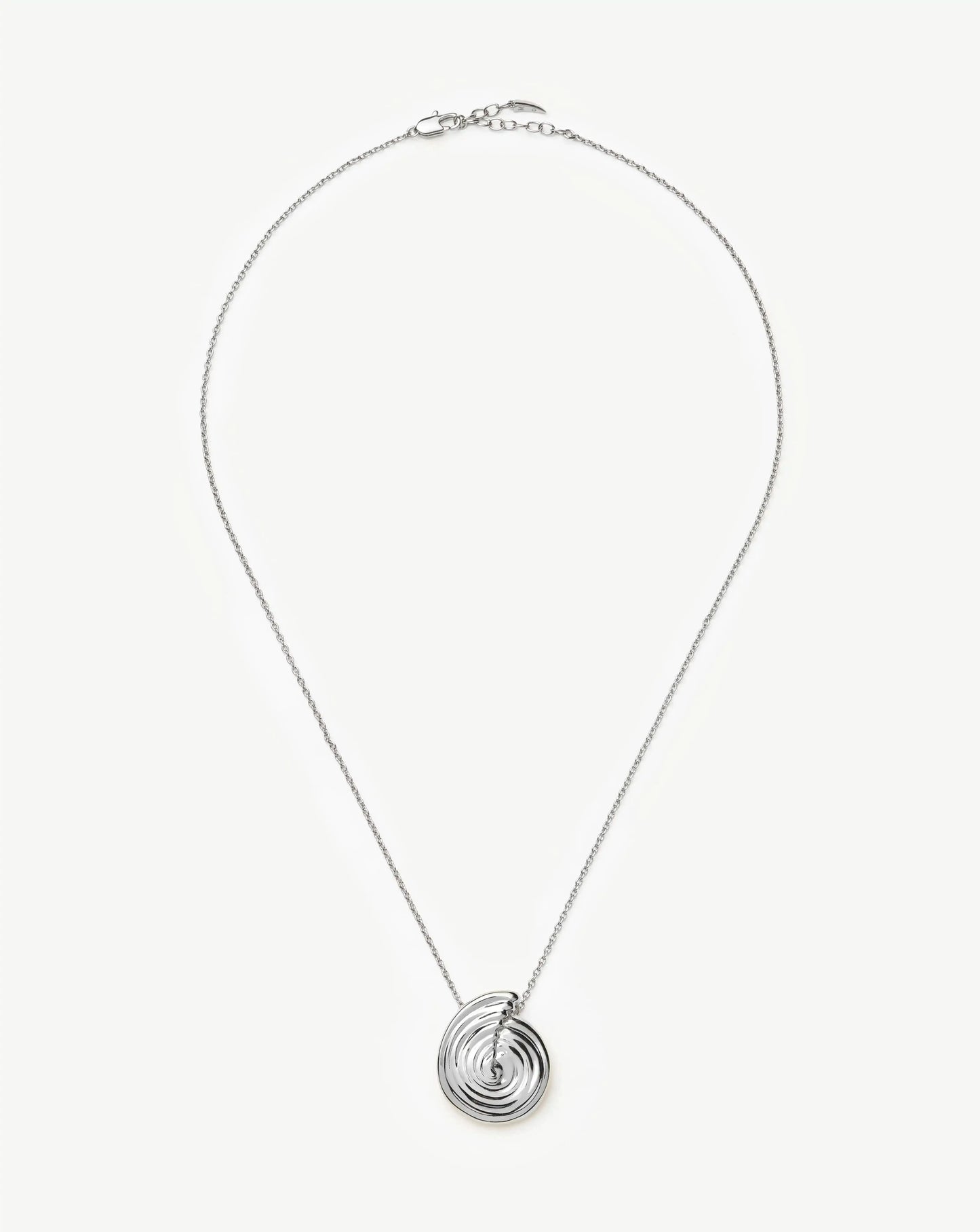 This statement spiral pendant necklace is perfect for every summer moment. Create your own unique layers by styling with staple silver chain necklaces or your favourite studs.