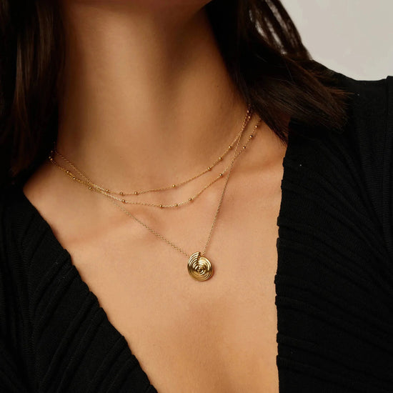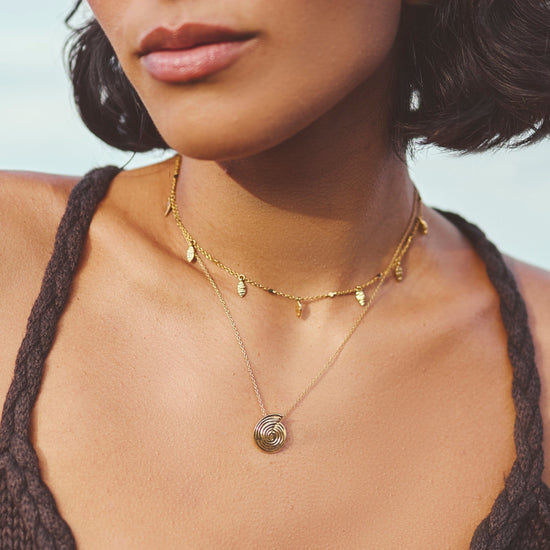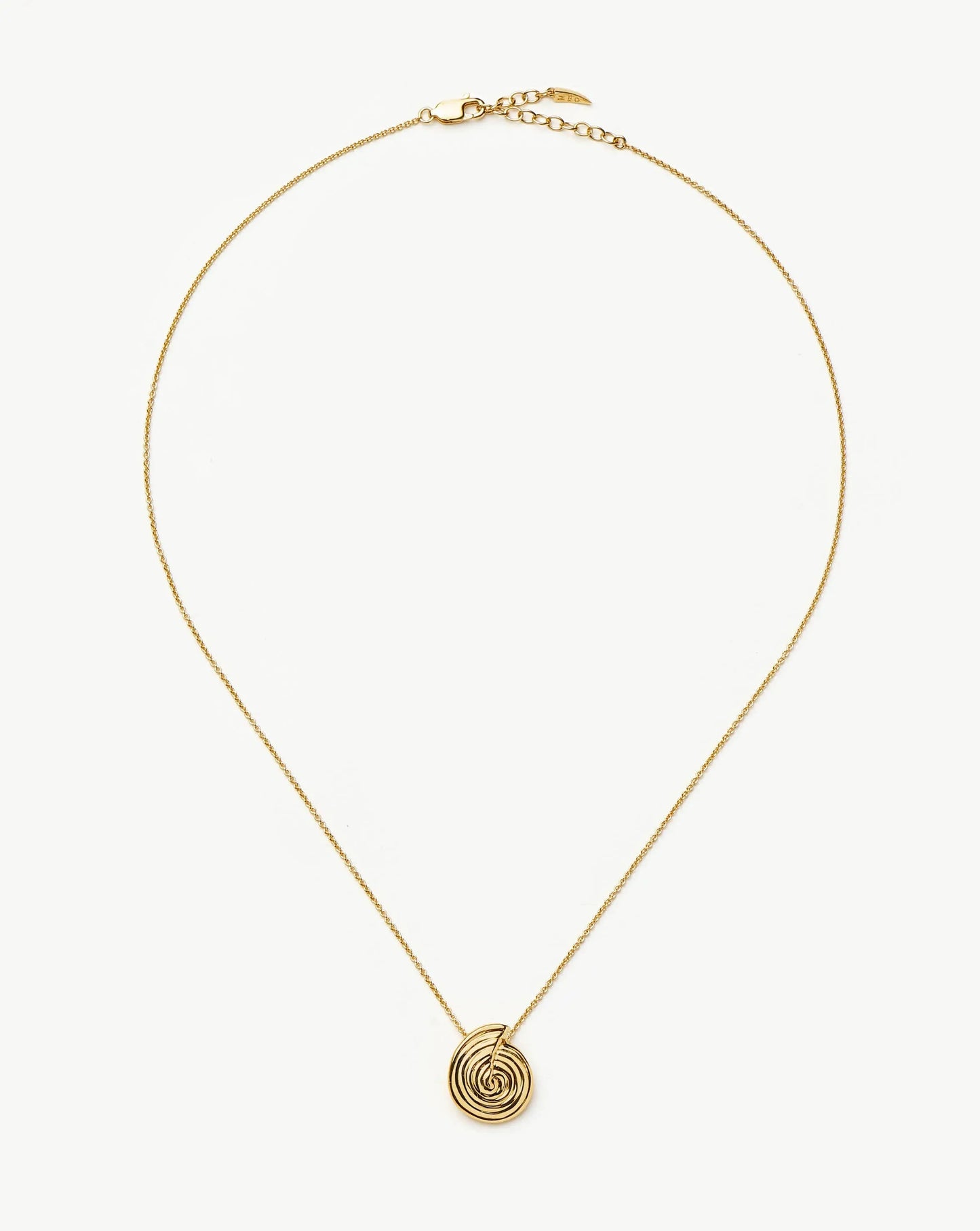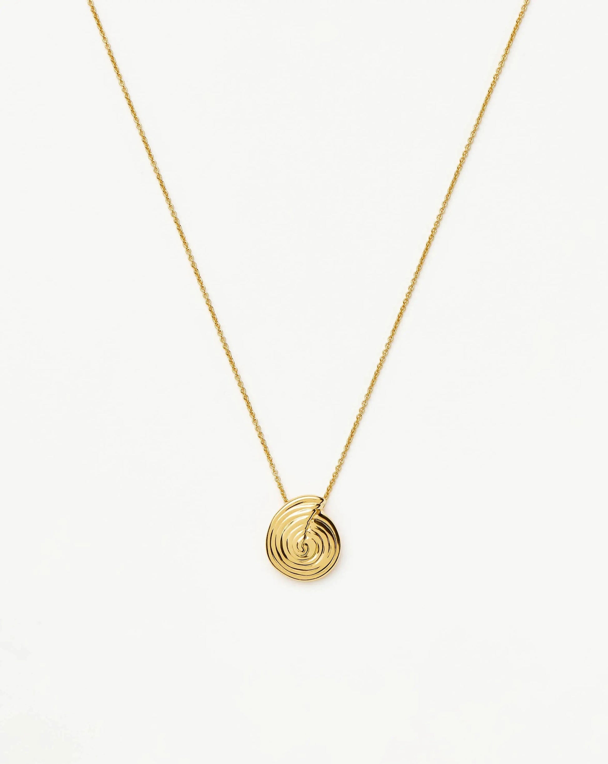 This subtle spiral pendant necklace is the perfect elevated essential for every summer moment. Create your own unique layers by styling with staple gold chain necklaces or your favourite statement studs.