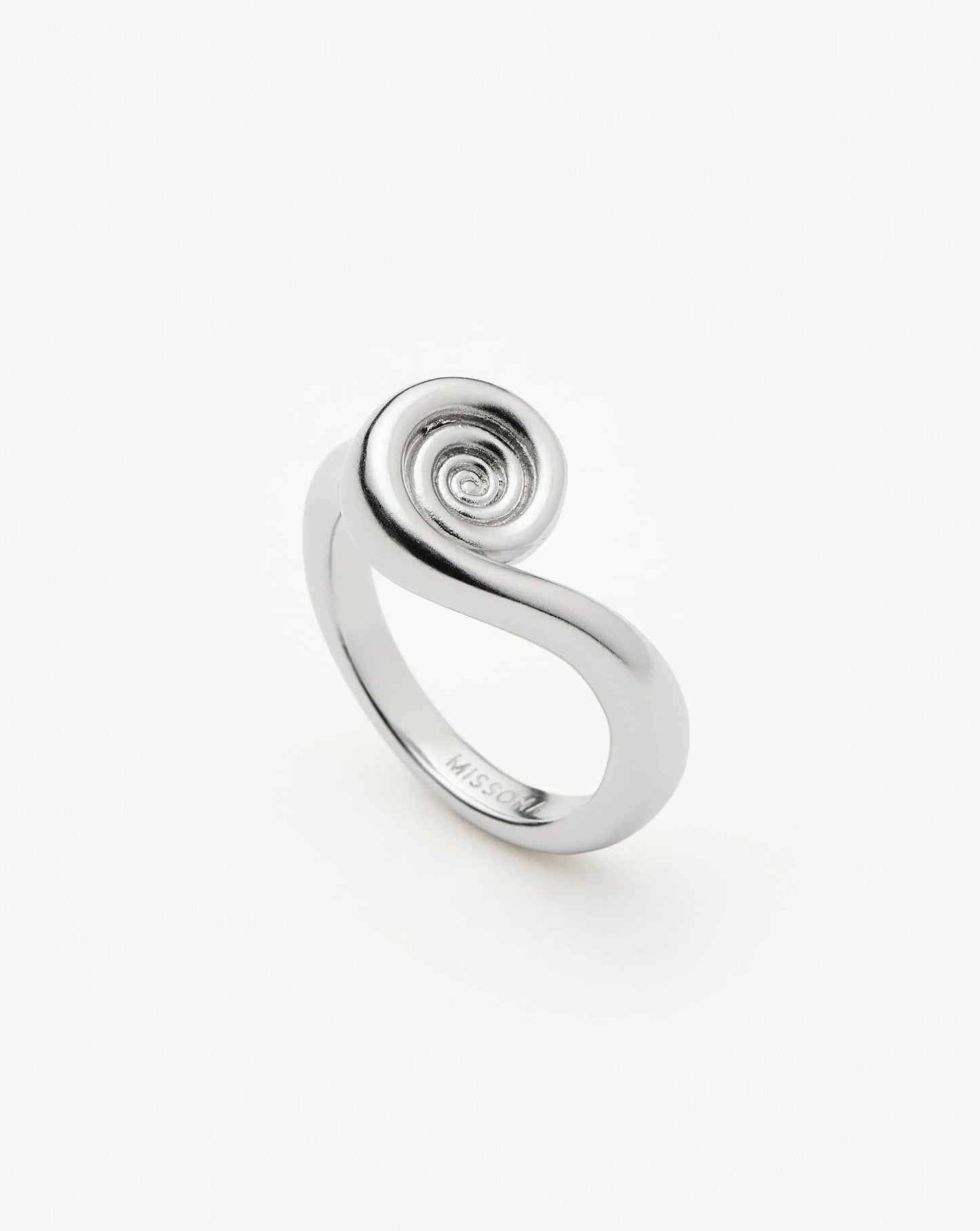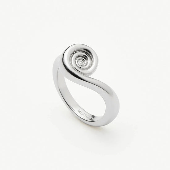 This silver stacking ring features ocean-inspired spiral detailing. Designed to be stacked with the Spiral Stacking Ring in gold. Wear solo for a classic everyday look or style up by stacking our best selling or gemstone rings.