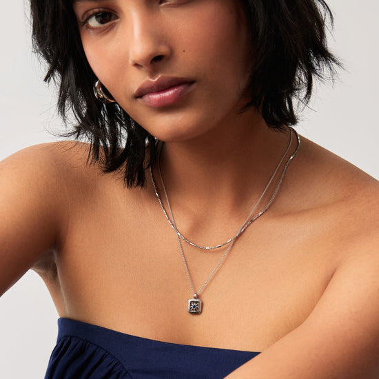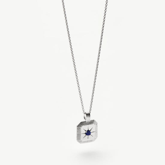 Bring your birth month a whole new meaning with a personalized gemstone necklace. The ridged pendant, held on a short chain necklace, holds a lapis stone, for attracting prosperity and success, and is embellished with a central star motif. The perfect gift for anyone born in September.